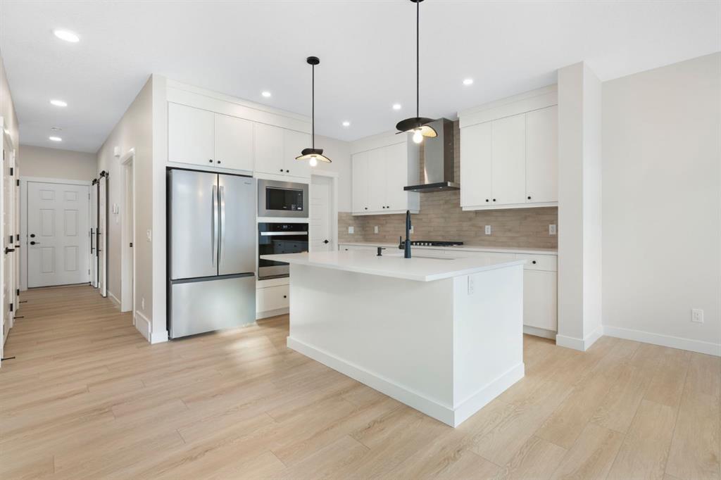 Welcome to your new home in the boutique community of Rivercrest in Cochrane! Built by Trico Homes, this stunning 3 bedroom home is bright, welcoming and has the perfect layout. Upon entering, you\'ll find a spacious main floor flex room, ideal for a home office, study, or kids playroom. Continuing into the main area, you’re greeted by the large full wall of windows to enjoy amazing sun from your south facing backyard. Your open concept kitchen is complete with a built-in stainless steel appliance package including a gas range and additional drawers, hello storage! Enjoy cooking with ample counter space, a large pantry and spacious island; perfect for your kids to enjoy breakfast or entertain. An inviting electric fireplace adds warmth and coziness to your living room making it perfect for relaxing evenings. Heading upstairs you are greeted by a spacious & centrally located bonus room perfect for family movie nights or kids play space. Your primary suite is spacious & complete with a luxurious ensuite including double sinks, drawers for storage, upgraded tile shower and soaker tub. Conveniently situated just off your ensuite, is your spacious walk-in closet. Enjoy a full upstairs laundry room complete with additional storage and space to hang your clothes. The kids wing of the home is complete with two well appointed spare rooms with walk-in closets and a full spare bath with quartz countertops. In the basement you will find a separate side entrance, 9’ foundation, 3-piece bathroom rough-in and 2 basement windows perfect for your future development. Outside, enjoy the full day sun on your back deck and spacious 38’ wide future yard. Rivercrest is a quiet boutique community with stunning mountain views and a future school site. Enjoy getting to know your neighbours, on a quiet street and convenient access to everything Cochrane has to offer! Living here means convenient access to Calgary, minutes from Spray Lakes Recreation Centre & downtown Cochrane! You have everything Cochrane has to offer right at your doorstep. Call your Realtor and book your showing today!