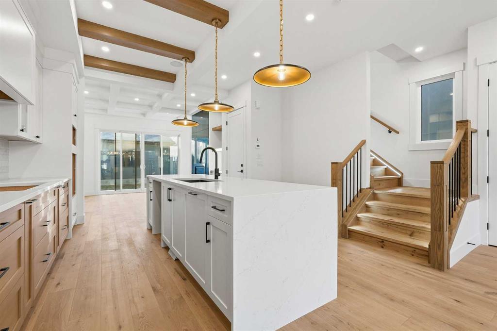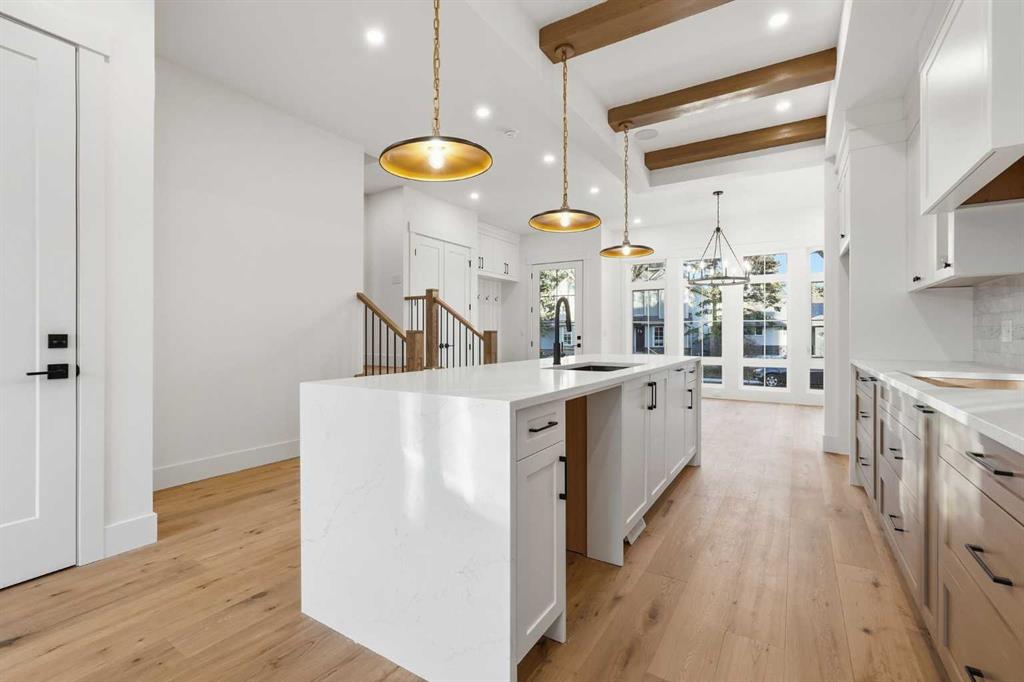 Welcome to this beautifully crafted new infill offering 6 bedrooms and 3.5 bathrooms across three fully developed levels, including a rare legal 3-bedroom basement suite. Designed for growing families & multigenerational living, this home combines high-end finishings with exceptional functionality. With 9-foot ceilings on every level — including the basement —, a vaulted primary retreat, wide plank engineered hardwood throughout, & extensive custom built-ins on all levels, this property delivers luxury & flexibility. The legal suite offers outstanding versatility — ideal for older children, aging parents, or as a strong rental opportunity with potential income in the $2,000/month range.
