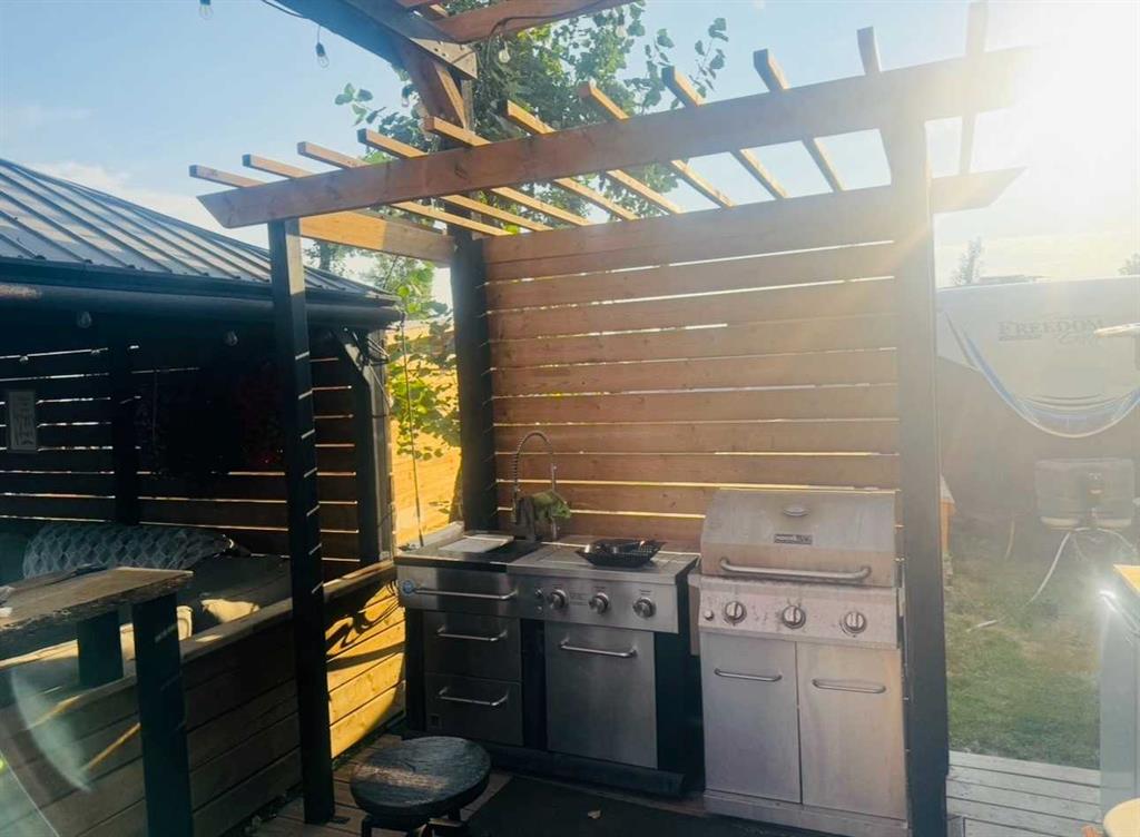 500lb Propane Tank, New Brick fire pit, with 14\' round layed brick seating area ,Beautiful 13ft high Pergola with Edison lights and water mist system for those hot summer days. Full Wrap Around Bar area with Chairs ,Full outdoor kitchen with covered mini pergola propane gas BBQ, Cook station and sink, bar fridge hooked up too 500lb tank ,7\' metal patio table with 6 chairs( 2 years old) Gorgeous landscaping, 50\' x 12\' Riverstone decorative rock with double underlay gravel driveway with golf cart parking pad, 360 degrees security system works with smart phone, Starlink satellite system $140/month (this can be negotiated ) Trailer Details: 2020 Primetime Crusader 395 BHL https://share.google/Oqkxq9swbbIPLMlOK 3 Slides, 2 powered awnings with led lights,1st owner, purchased in August 2020 New $99,000. Beautifully designed with island sink,