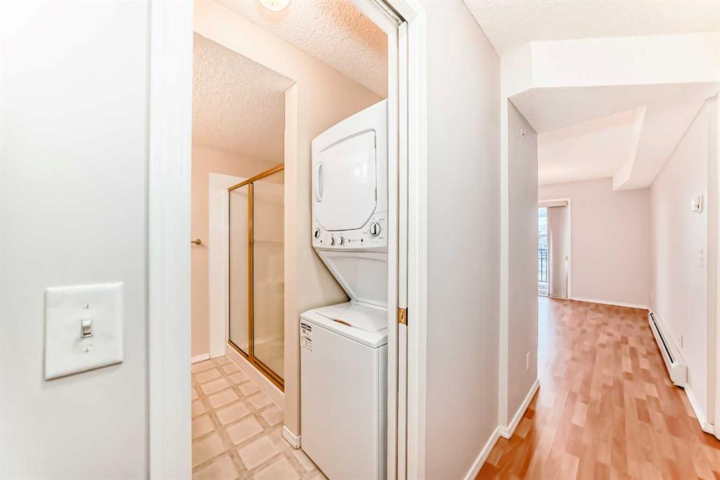 This one-bedroom / Den apartment-style condo features a cozy layout, in-suite laundry, and a large south-facing balcony that floods the space with natural light. No upstairs neighbours. Peace, privacy, and sunshine all in one!