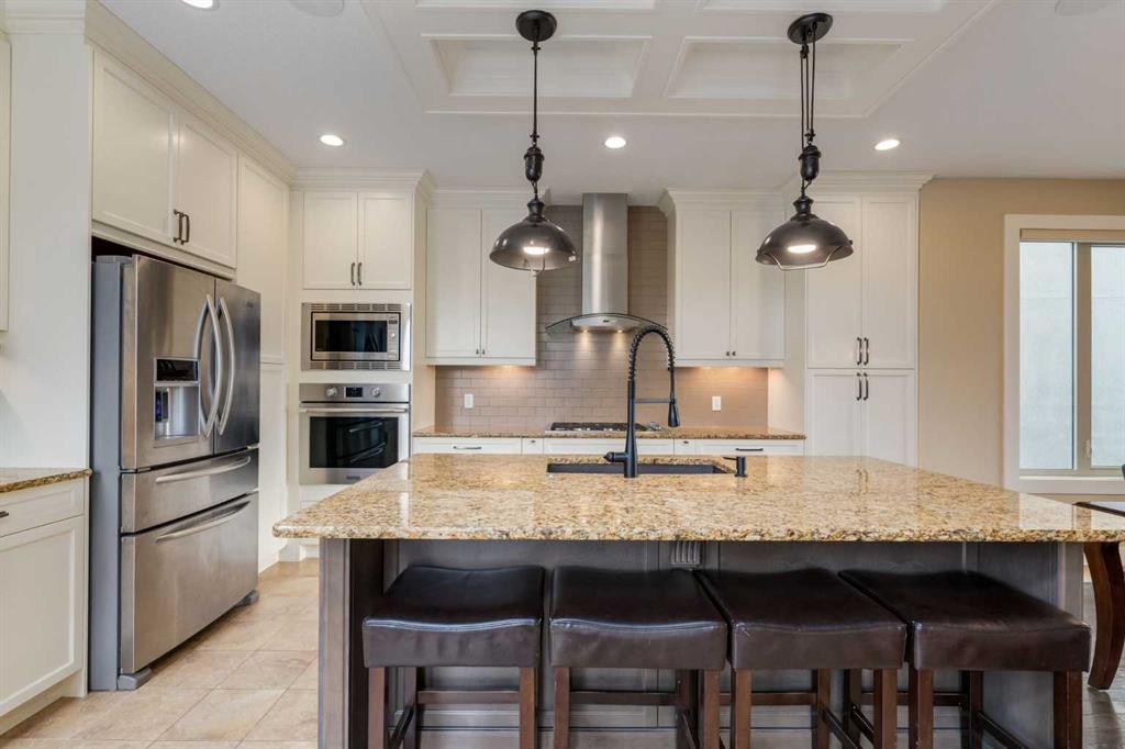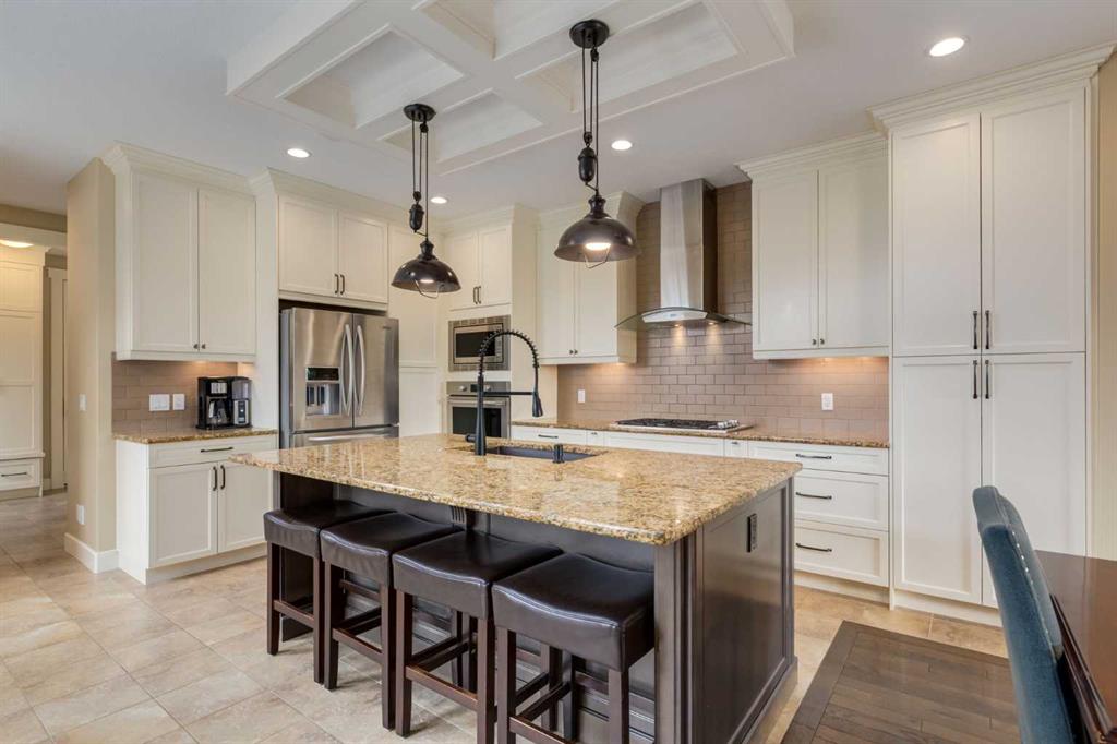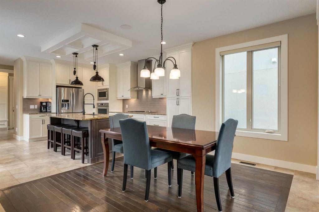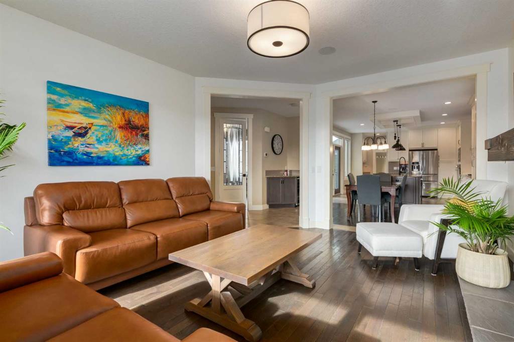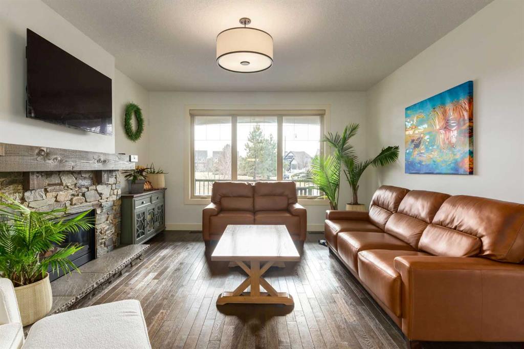 Parkside elegance ~ Exceptional 5 Bedroom home in the Estates of Cooper’s Crossing with over 3,500 sqft of beautiful finished living space, perfectly positioned on one the community’s most sought-after streets! Cooperstown Court is quiet, family-friendly, with under 30 homes centered around a park and mature green space! Immediately admire its full-width front porch, an incredible place to unwind while enjoying peaceful park views, and the home’s striking stonework and architectural presence. The main floor showcases 9’ ceilings, rich hardwood flooring, and a big tiled Foyer with an organized front closet to welcome you. The front Living Room is anchored by a stunning gas fireplace with full stone surround and wood mantle, framed by large windows overlooking the park. Truly standing-out as the heart of this home is the stunning Kitchen…With floor-to-ceiling classic light cabinetry, granite countertops, tiled backsplash, SS appliances, coffee centre, pantry, AND a massive eat-up island with a built-in sink. From here, step outside to the private backyard oasis with all day sun! Featuring a raised deck, lower stone patio, and fully fenced yard! This open layout is made for entertaining, the Dining area sits between the Kitchen & Living Room, elegantly framed by tile inlay, with an adjacent corner cocktail counter including built-in cabinetry & beverage fridge to tie it all together. Also on the main-level is a huge Office featuring a big window & extensive built-in desk with loads of cabinetry, a spacious Mudroom with built-in desk space, bench seating, surrounded by custom storage & elegant hooks, plus a convenient 2-pc Powder Room. Upstairs, the vaulted Bonus Room has built-in speakers and captures beautiful park views, creating the perfect family retreat. The Primary Suite is a luxurious escape featuring abundant natural light and a spa-inspired 5-pc Ensuite, with fully tiled oversized walk-in shower, dual vanities with stone counters & a full-length mirror, soaker tub beneath the opening window, and SKYLIGHT. The Walk-in Closet is finished with custom wood shelving for a refined touch. Two spacious secondary Bedrooms, a stylish 4-pc Bathroom, and convenient top-floor Laundry add everyday functionality. The builder-finished Basement continues the home’s elevated feel with tall ceilings, bright windows, plush carpeting, and a Family / Rec Room with a spectacular floor-to-ceiling stone gas fireplace. This level also offers TWO additional Bedrooms and a magazine-worthy 3-pc Bathroom with stone counters and a fully tiled oversized walk-in shower - bringing the home to a total of FIVE BEDROOMS! There’s even Central A/C for year-round comfort, but we saved the best for last…The impressive 30 x 23 OVERSIZED DOUBLE DETACHED GARAGE is insulated, drywalled, and features exceptional HEIGHT —ideal for maximizing storage or accommodating a hoist. Located just a short walk to nearby schools, pathways, and amenities, this is a rare opportunity to find!
