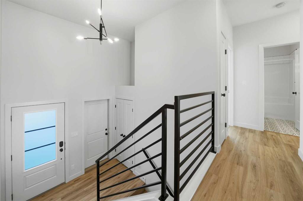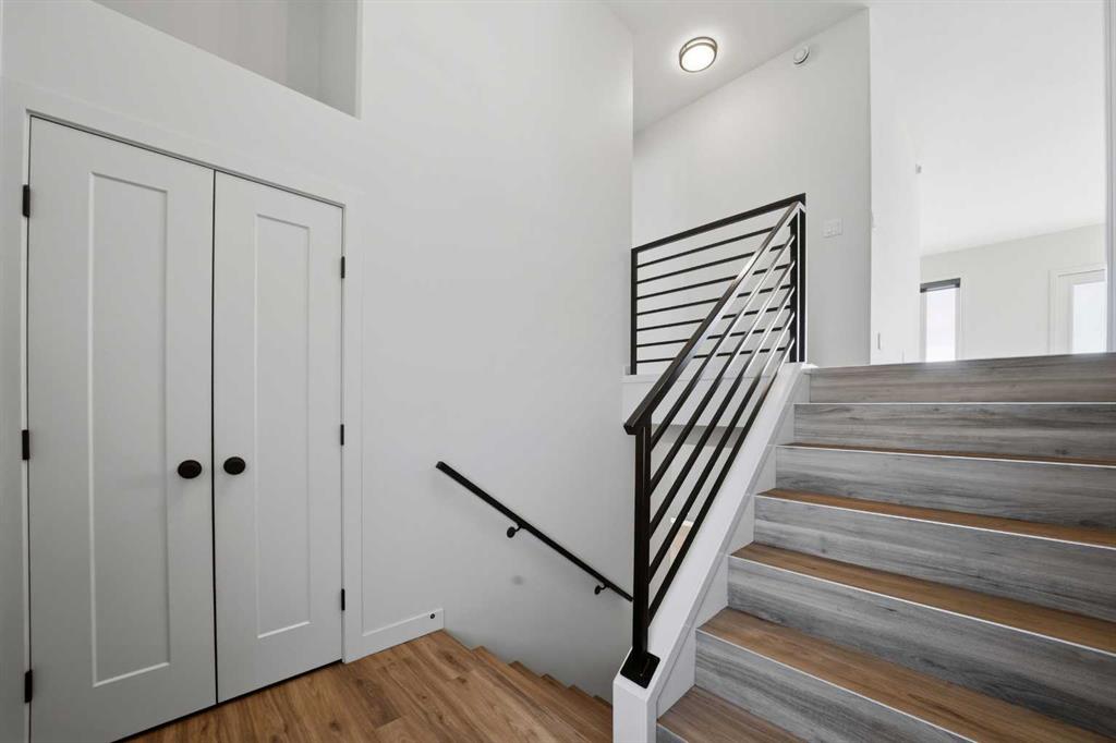 Welcome to 9 Aztec Street in the desirable community of Aurora in Blackfalds. A beautifully upgraded bi-level built by True-Line Developments offering quality craftsmanship and exceptional design throughout. From the moment you arrive, the stunning curb appeal stands out with its attractive blend of stonework, wood accents, and modern vertical siding. A welcoming front entry opens to a wide staircase accented by sleek black metal railing, setting the tone for the stylish finishes found throughout the home. The main floor showcases an impressive kitchen designed to be both functional and beautiful, featuring upgraded two-tone cabinetry, full quartz countertops, deep corner pantry, floating shelves, modern light fixtures, and matching black appliances including an upgraded gas stove. The open concept layout flows seamlessly into the spacious dining and living areas, highlighted by large windows fitted with custom blinds that flood the space with natural light. Garden doors lead to the rear deck with gas line for BBQ, overlooking the massive fully fenced yard. perfect for relaxing or entertaining. Both the covered front veranda and rear deck feature durable Moisture Shield composite decking for long lasting, low maintenance enjoyment. The main floor offers three bedrooms, including a generous primary retreat complete with walk in closet and private ensuite featuring dual vanities and a standup shower. Convenient main floor laundry adds everyday ease. The professionally developed basement is thoughtfully designed for family living and entertaining, offering a large media area, an expansive family room behind stylish barn doors, an additional bedroom, and a beautifully finished three piece bathroom with full tile surround and walk in shower. A substantial storage area provides excellent space for seasonal items and organization. Located within walking distance to neighborhood shopping and close to schools, parks, and amenities, this home offers the perfect blend of style, function, and location in one of Blackfalds’ newer communities. A move in ready home that shows pride of ownership with thoughtful upgrades throughout.