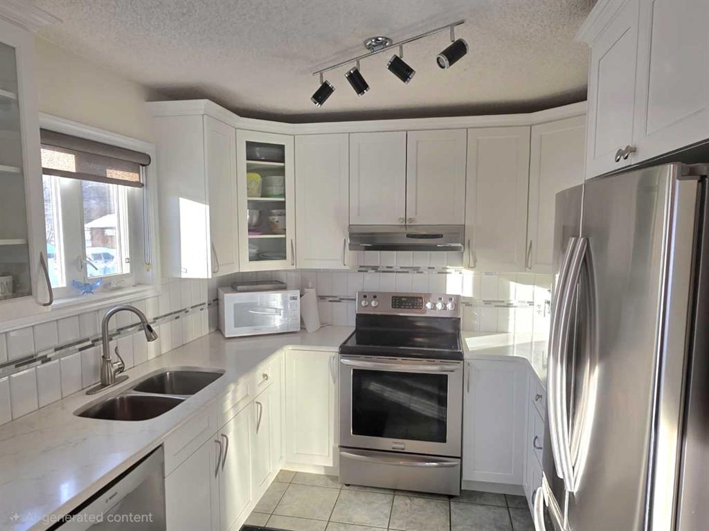 Welcome to this beautifully maintained 1,050 sq. ft. home that is completely finished on both the main floor and basement, offering comfortable living space throughout. The main level features hardwood and tile flooring, a bright kitchen with an open layout with fresh paint through most of the upper floor, creating a clean and inviting atmosphere. With five bedrooms and three bathrooms, this home provides excellent functionality for families or those looking for extra space. The fully developed basement includes a large recreation area perfect for entertaining or relaxing, along with two of the five bedrooms, a spacious storage area, large storage room and an even larger laundry area. Recent upgrades include a high efficiency furnace, additional attic insulation for improved efficiency and comfort, shingles, some new fixtures and recent duct cleaning. As an additional upgrade the home offers PVC windows to enhance energy performance, updated kitchen with stainless steel appliances and refurbished deck. Step outside to enjoy the fenced backyard — ideal for summer gatherings or quiet evenings at home with the additional benefit of a small garden A very well-maintained property offering space, updates, and value — ready for its next owners to move in and enjoy.