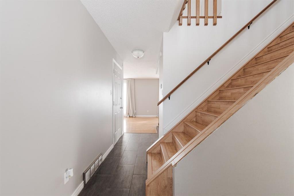 Upstairs offers three bedrooms, an office nook, and laminate flooring throughout. The upper level was freshly painted in 2025, giving it a bright and refreshed feel. The primary bedroom features a wall to wall closet and an updated ensuite completed in 2018 with quartz countertops, a new toilet, updated flooring, and added upper cabinetry for extra storage.