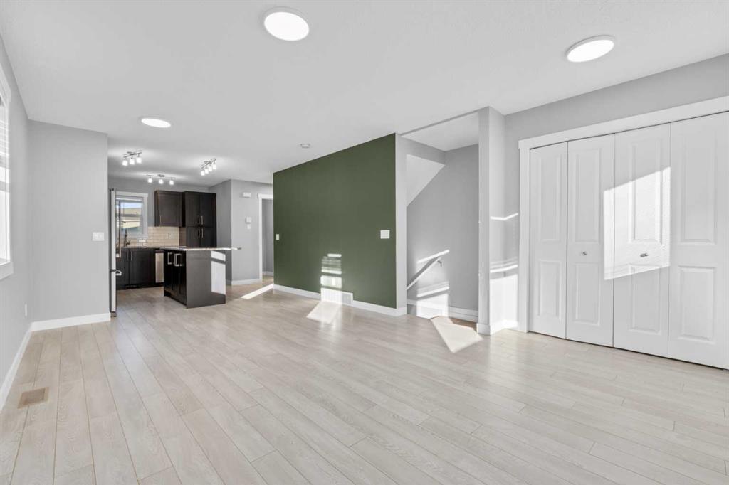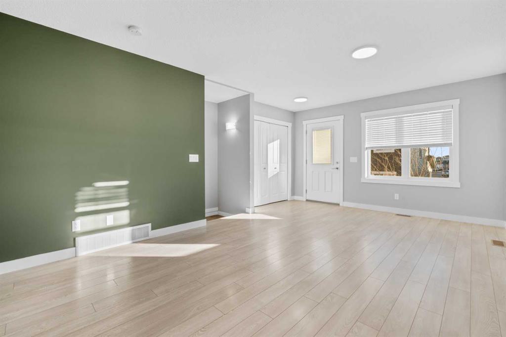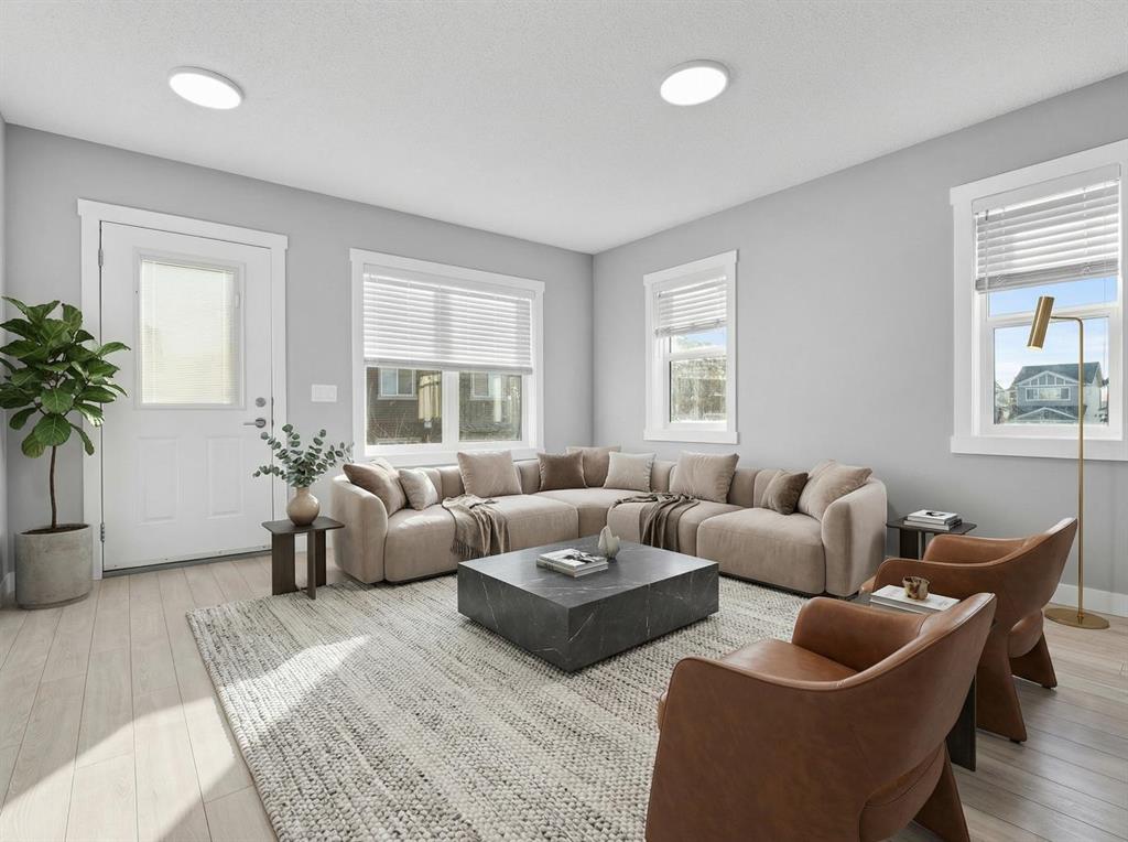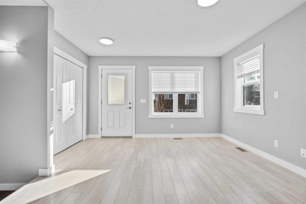 Hello Airdrie! Welcome to this immaculately maintained END UNIT is truly the one you\'ve been waiting for! Freshly painted and professionally cleaned, this bright and inviting home features spectacular windows, modern flooring and new light fixtures throughout the main floor. With an open-concept layout where the kitchen, dining, and family room flow seamlessly together, creating the perfect space for both everyday living and entertaining. Upstairs, you\'ll find a versatile flex area ideal for a home office or play space, a spacious secondary bedroom and full bathroom, a convenient upper-floor laundry, and a generous primary retreat complete with its own ensuite. Enjoy outdoor living with both a lower patio and upper deck, plus the added bonus of an oversized single attached garage and driveway for extra parking and storage. Situated in a quiet, well-managed complex offering a community gazebo and ample visitor parking, this home is surrounded by parks, scenic pathways around the ponds, bike paths and a pump track, and is just minutes from shopping and quick access to 40th Avenue for easy commuting. This is an exceptional opportunity to own a beautifully cared-for home in one of Airdries most fantastic communities.