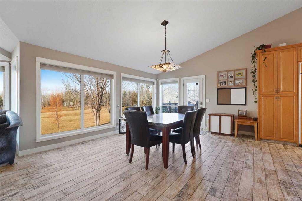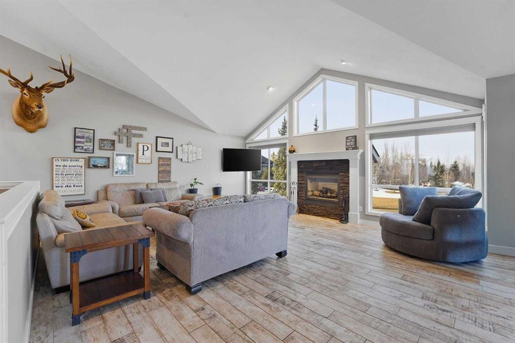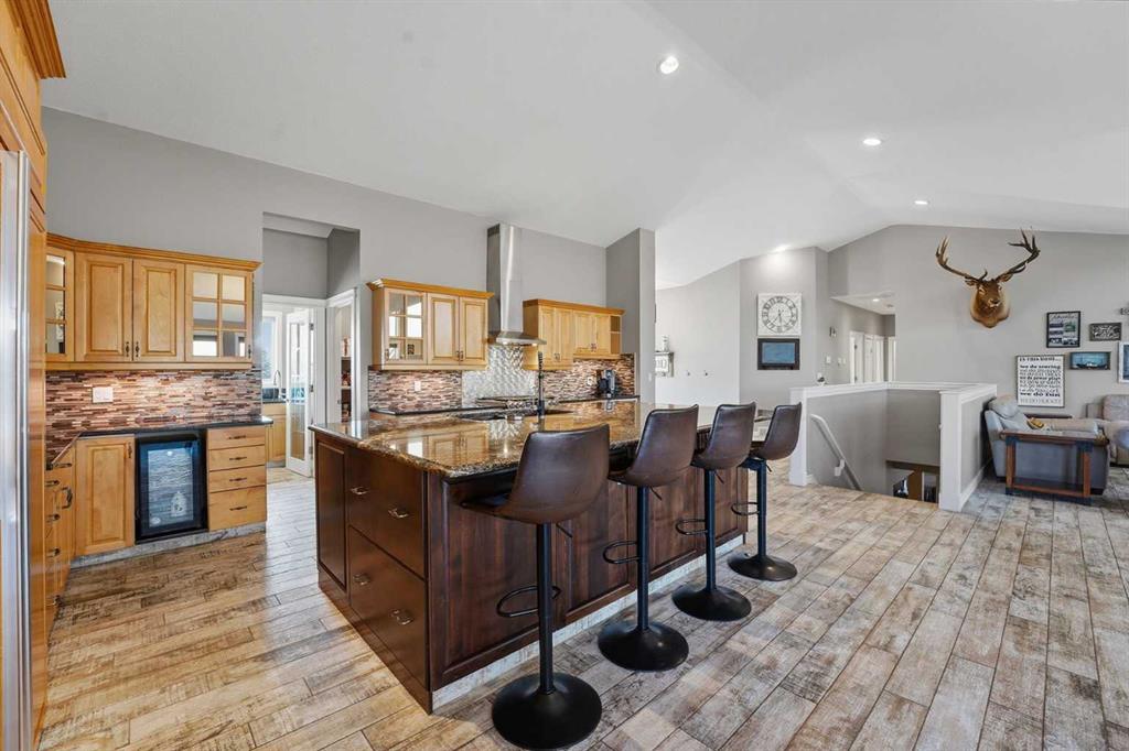 Soaring 13\' vaulted ceilings elevate every main floor room , while the open-concept design showcases a chef-inspired kitchen with 2 dishwashers, 2 wine fridges, a hammer copper sink, gas range, tonnes of in-island storage & an abundance of natural light everywhere! The main living area has wide planked tile floor which is made to mimic hardwood with the durability of tile for kids and animals - and the windows have a solar shield to aid with keeping the heat out on warm summer days. This home has two amazing \"at home office\" options you must see - one with outside access! The fully developed walkout basement with 9FT CEILINGS & in-floor heat features a spacious recreation area, bar, 2 additional large bedrooms, an awesome office, 4 piece bathroom with STEAM SHOWER and in addition - a gym/flex room! Checkout the floor plan & room measurements to truly understand how FUNCTIONAL this home is. Noteworthy upgrades & features include hot water on demand, new carpet, IN-FLOOR heat, 220V in garage, in ground sprinkler system taken care by the community association. The landscaping is DONE from one end to the other on an oasis of lush trees & grass to enjoy year round! Bring your ATV, your golf cart and your RV - you\'ve got inside storage & outside space to spare!