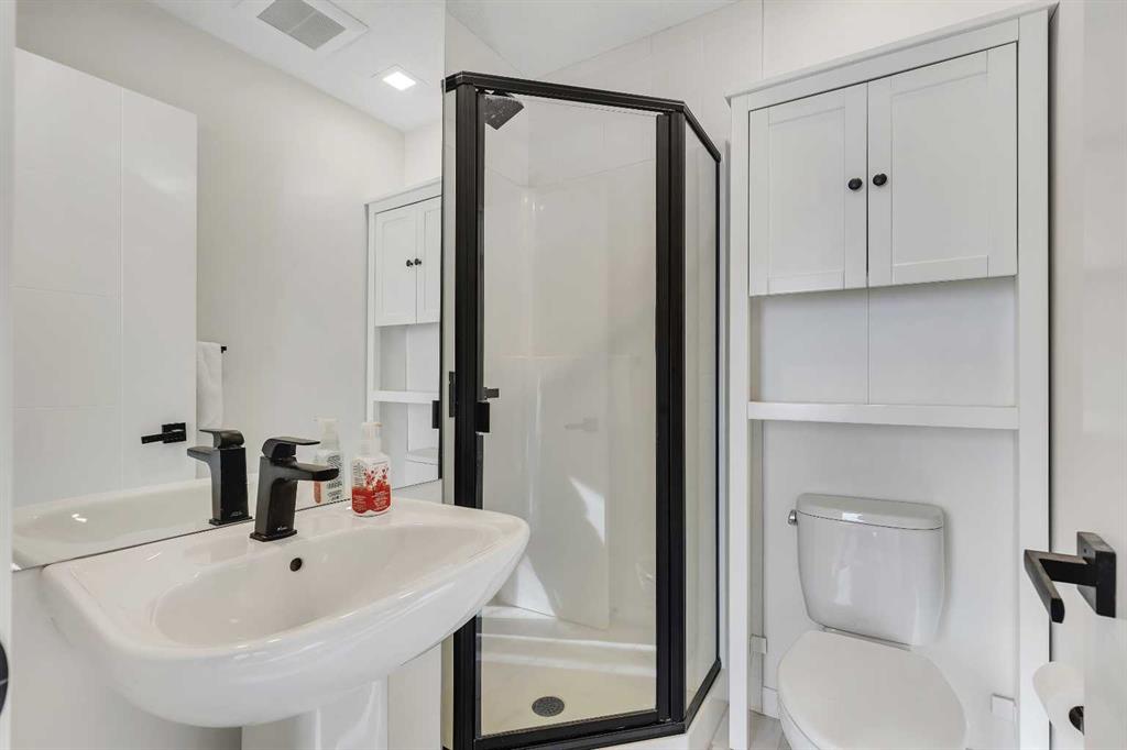 Welcome to Artis in Greenwich — a luxury townhome collection located in one of Calgary’s newest master-planned community. Greenwich spans 59 acres in NW Calgary and blends brownstone architecture with boutique urban living. Home to the Calgary Farmers’ Market West, the community offers an impressive selection of cafés, restaurants, walking paths, parks, and stunning views of WinSport and the Rocky Mountains. This townhome features 1,562 sq ft of thoughtfully designed living space, including a double-primary bedroom layout, a ground-level flex room with a full bathroom, in-floor heating, and a double attached garage. The ground level offers 268 sq ft with a spacious foyer, a versatile flex room currently used as a gym, a 3-piece bathroom, and direct access to the garage. The main level provides 637 sq ft of open-concept living with a bright kitchen, dining area, and living room. The upgraded kitchen package includes sleek white cabinetry with black hardware, stainless steel appliances, gas stove and a designer hood fan. The striking black herringbone-patterned tile backsplash frames the stove area beautifully, creating a focal point balancing the lighter elements of the kitchen. A large island with undermount sink and sleek chrome faucet creates a comfortable seating area to enjoy quick meals or is the perfect gathering spot. From kitchen, step onto the deck equipped with a gas BBQ line. The laundry room is just off the kitchen. The living room is warm and inviting with south-facing windows, an electric fireplace with brick surround, and access to a second balcony which is south facing and overlooks the central courtyard. Upstairs, you’ll find and additional 657 sq ft with two spacious primary bedrooms, each with its own ensuite — one a 5-piece and the other a 4-piece. Additional upgrades include glass panels on stairwells, undermount sinks with full-height tile and mirrors in the bathrooms, upgraded lighting and window coverings, and air conditioning. The double attached garage includes 2 wall heaters and opens up to a off-street double parking pad. The exterior showcases timeless brownstone styling with James Hardie siding, full brick accents, and stucco finishes, offering durability and low-maintenance living. Greenwich’s location is exceptional — just 20 minutes to downtown, quick access north or south, and under an hour to Canmore and Banff. With parks, playgrounds, and the Farmers’ Market within walking distance, this is urban-inspired living at its best. The sellers have been fortunate to have an excellent tenant in place, who is willing to remain should the buyer wish to purchase the property as an investment.