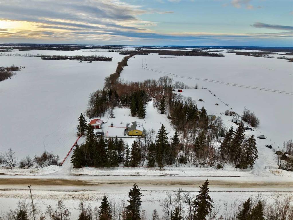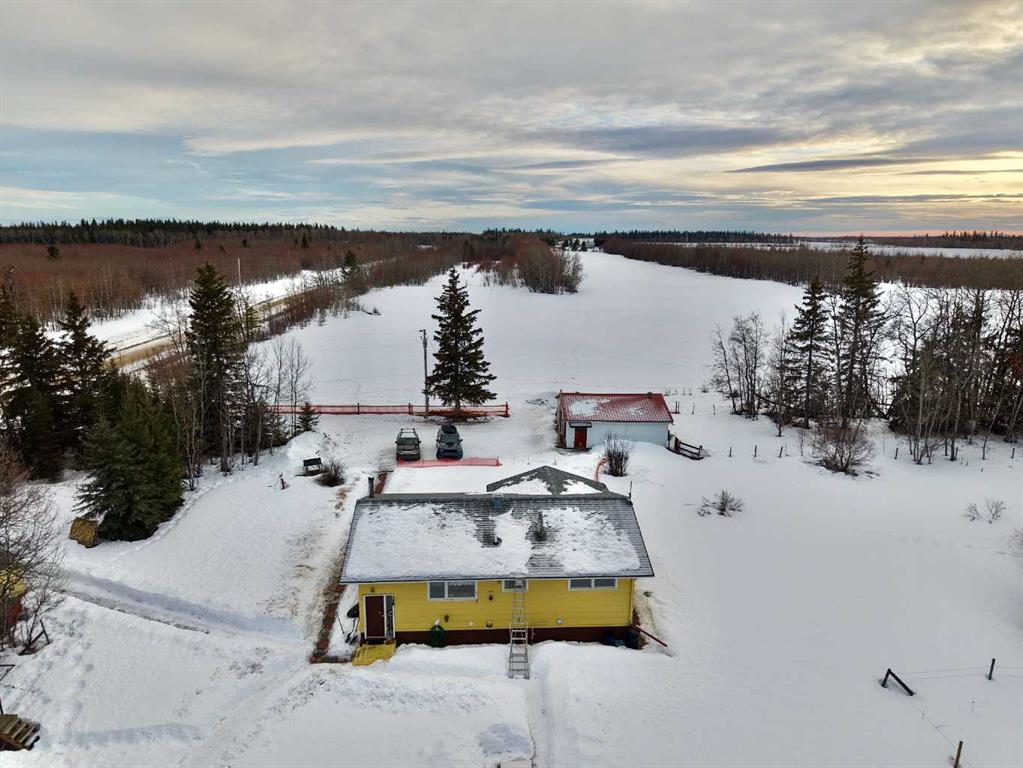 Classic Bungalow on 6 Private Acres – The Perfect Balance of Space & Convenience! Escape to the peace and privacy of acreage living with this solid, well-built classic bungalow nestled on 6 beautifully treed acres ideally located between Peace River and Grimshaw. Enjoy the tranquility of the countryside while still being just a quick and easy drive to all the amenities each community has to offer — truly the best of both worlds. This well-maintained home offers a warm and welcoming feel from the moment you step inside. Original hardwood floors flow throughout the main level, adding timeless charm and character, while large windows flood the space with natural light and create a bright, inviting atmosphere. The main floor features three comfortable bedrooms and a full bathroom, along with spacious living and dining areas that are perfectly suited for hosting family gatherings or quiet evenings at home. The kitchen offers plenty of room to cook, gather, and make memories — functional, practical, and ready for everyday living. Downstairs, the fully finished basement expands your living space with an additional bedroom and bathroom, plus a cozy family room complete with a woodstove. Not only does it create the perfect ambiance during the colder months, but it also helps supplement heating costs — a valuable bonus for acreage living. Outside, the yard is landscaped and private, surrounded by mature trees that enhance the peaceful setting. For those needing space for vehicles, hobbies, or work, this property delivers in a big way. A 23x28 detached garage provides excellent everyday storage, while the impressive 32x48 heated shop is set back from the home with its own driveway — an ideal setup for operating a business, working from home, or tackling large projects without disturbing your personal space. If you’ve been searching for a solid home on private land with room to live, work, and grow — all within minutes of town — this property checks every box.