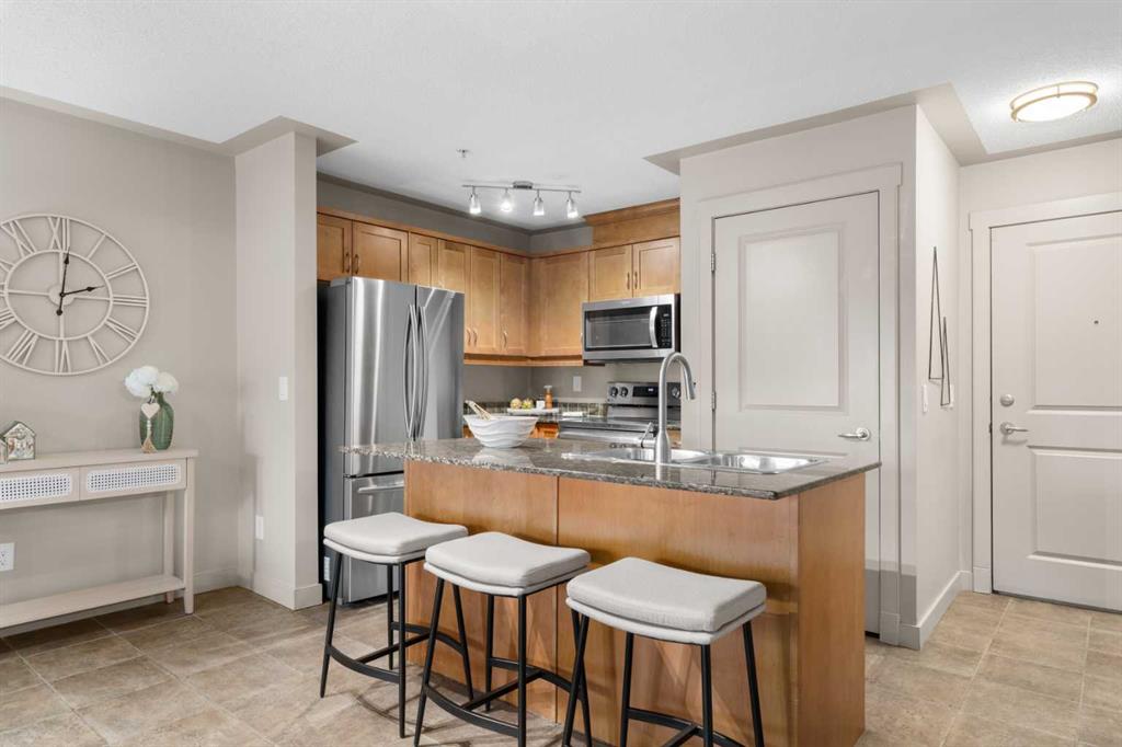 If you’ve been looking for easy, walkable living in the heart of Garrison Woods, this main floor one-bedroom at Gateway Garrison Woods might be exactly what you had in mind. You’re just steps from everything in Marda Loop—coffee shops, restaurants, fitness studios, boutiques—and yes, Safeway is only a short stroll away, making last-minute grocery and morning coffee runs incredibly convenient. Inside, the layout just makes sense. Every inch of space is thoughtfully used, so nothing feels wasted. The open-concept kitchen features newer appliances and a breakfast bar that’s perfect for casual dinners or having friends over. The den is a standout feature, complete with custom built-ins for storage plus a wine and beverage fridge—ideal for working from home or creating a stylish extension of your living space. The living and dining area is bright and spacious, with direct access to your private patio and gate, giving you that easy in-and-out access that only a main floor unit can offer. The primary bedroom is generously sized and sits right next to the four-piece bathroom, and of course, there’s the everyday bonus of in-suite laundry. Beyond your front door, you’re close to the river pathways, the sandy shoreline at Sandy Beach Park, and the popular off-leash area at Altadore Off Leash Dog Park. You’re also just minutes from Mount Royal University, The scenic pathways in North Glenmore Park, downtown, and transit routes. It’s the kind of location that makes day-to-day life feel effortless—whether you’re heading out for a walk, meeting friends in the Loop, or grabbing groceries on the way home. Included in the price of this home is a titled, heated underground parking stall. Another great benefit is the affordable condo fees which include heat, water, sewer and electricity.