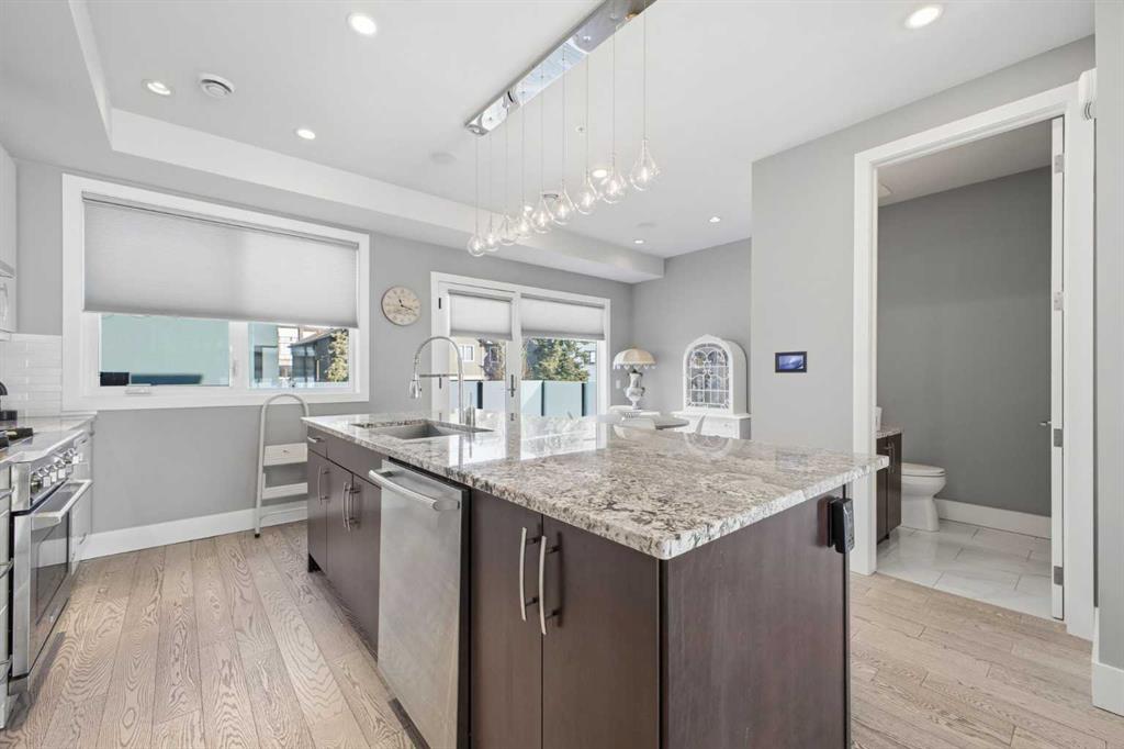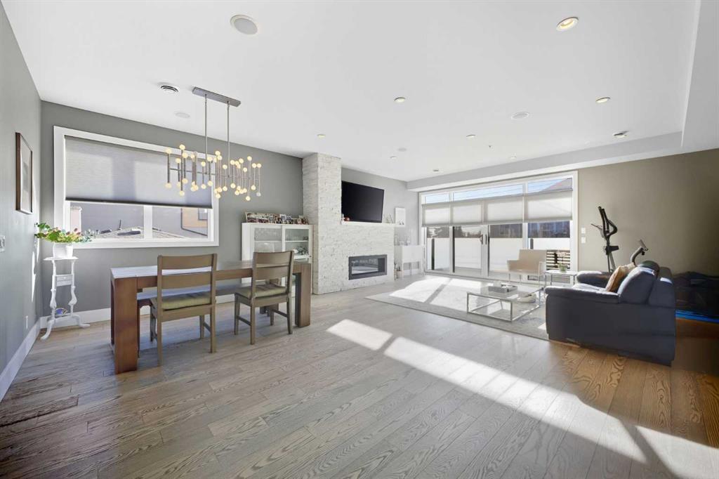 OPEN HOUSE SATURDAY, FEBRUARY 14TH FROM 2-4 PM. Gorgeous upscale 3 bedroom townhome in the heart of South Calgary offering over 2100 sq ft of living space & an ELEVATOR SERVING ALL 3 LEVELS! The open & airy main level presents wide plank hardwood floors, lofty ceilings & is drenched in natural light, showcasing the spacious living room that’s anchored by a feature fireplace & has access to a private deck with outdoor fireplace. The dining area with stylish light fixture provides ample space to host family & friends & seamlessly flows into the kitchen that’s tastefully finished with granite counter tops, island/eating bar, plenty of storage space, stainless steel appliances & cozy breakfast nook with access to the north balcony with BBQ gas hookup. A 2 piece powder room completes the main level. The second level hosts 3 bedrooms plus 4 piece main bath & laundry facilities. The generously sized primary retreat with private balcony boasts a walk-in closet & luxurious 5 piece ensuite with marble flooring, dual sinks, relaxing soaker tub & rejuvenating steam shower. Other notable features include an elevator, central air conditioning, built-in speakers & single attached garage. The prime location is incredibly convenient, walking distance to vibrant Marda Loop, River Park, Marda Loop CA, schools, shopping, public transit & effortless access to 14th Street & Crowchild Trail.