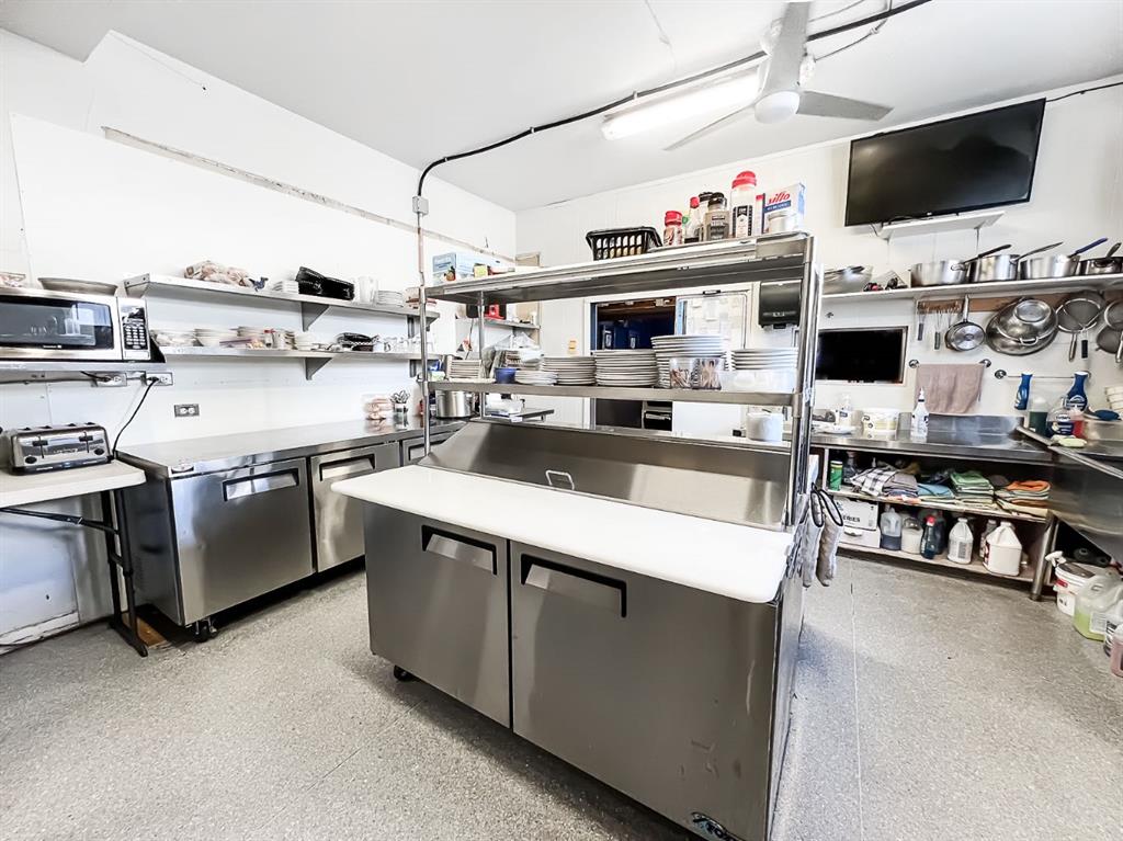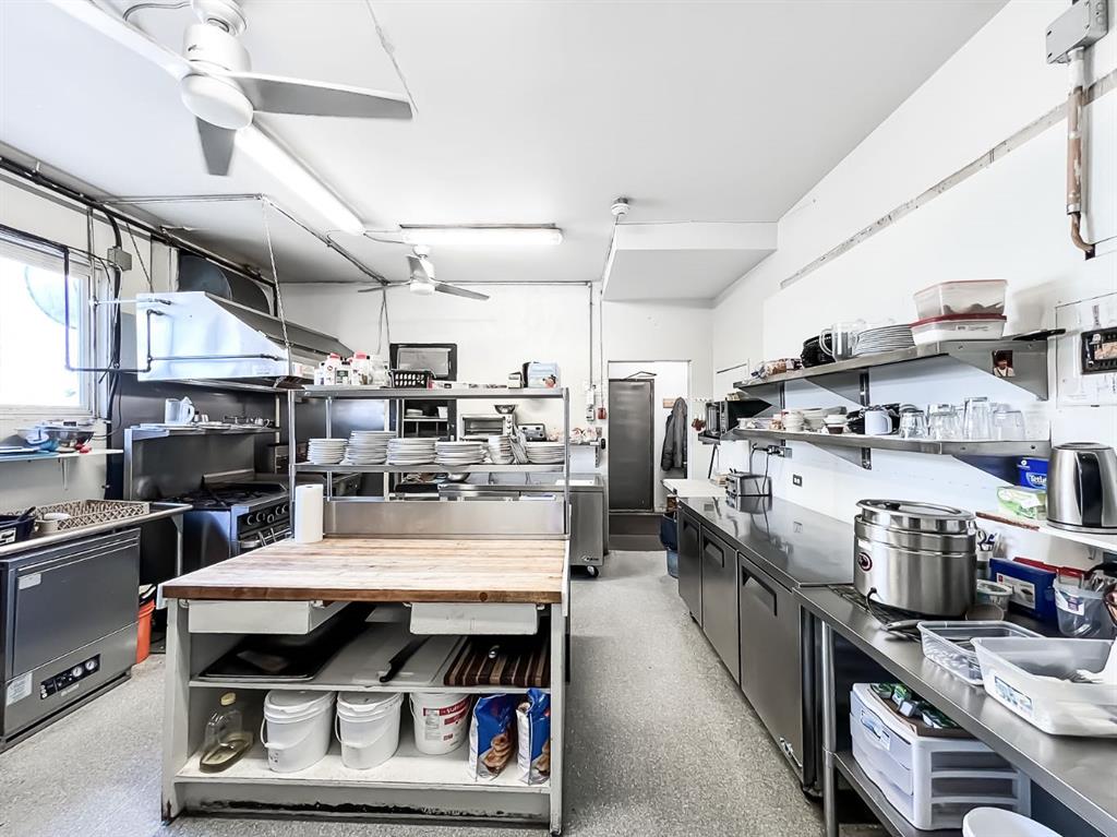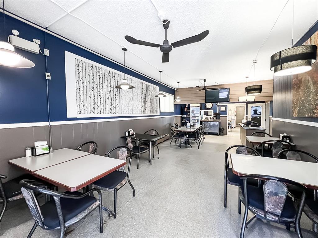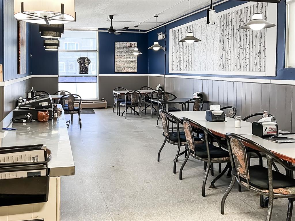 Turnkey Restaurant, Lounge, and Rental Property with Extensive Upgrades. This commercial property offers a prime investment opportunity with multiple revenue streams, including a restaurant, lounge, catering services, and hotel accommodations. This versatile space is fully equipped and ready for immediate operation. The restaurant and kitchen feature a spacious dining area with a standalone beverage cooler and a fully equipped commercial kitchen with newer equipment. The kitchen includes an industrial stove, deep fryer, dough maker, slicer, prep coolers, two walk-in coolers, and two freezers. Additional equipment includes a dishwasher, microwave, coffee machine, and commercial toaster. The property also comes fully stocked with catering equipment, including seven warmers, pizza pans, cutlery, and dining ware. The lounge and bar offer a separate entrance, two pool tables, and a newly built bar with a dishwasher. This space provides upgraded seating, tables, and chairs, creating a warm and inviting atmosphere for guests. The conference room and private event space feature a dedicated entrance, three TVs, a storage room, and a private bathroom, making it ideal for meetings, parties, and private events. The rental and accommodation area includes eleven rooms upstairs, offering a mix of private and communal bathrooms. Three rooms feature full bathrooms; two rooms include a toilet and sink; four rooms have a sink and two full communal bathrooms. Additionally, the property boasts a fully equipped rental suite with two bedrooms, a full kitchen, and a private bathroom. Dedicated laundry facilities are available both upstairs and in the basement. Additional features and upgrades include a new furnace with a boiler system (installed two years ago) and a new hot water tank with a pressure tank (installed two months ago). The property has three access points to the unfinished basement, providing ample storage or future development opportunities. Other features include an ice machine, oversized walk-in coolers, and extensive storage space. All bathrooms have been fully renovated with new toilets, and the downstairs bathroom is wheelchair accessible. For added security, the property has exterior security lighting on timers. Convenient access points include outdoor, side, and backdoor entrances. This turnkey property is ready to operate from day one. Schedule a viewing today to explore this exceptional investment opportunity.