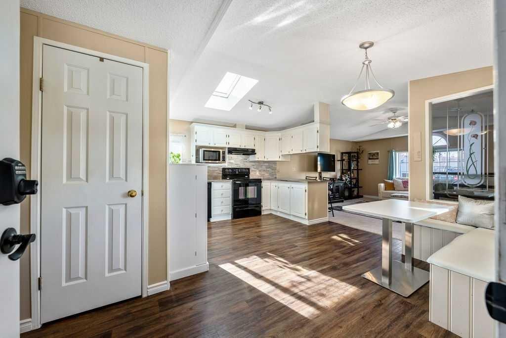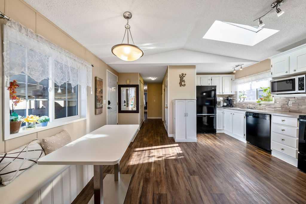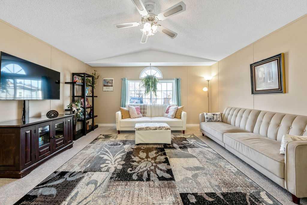 Unique opportunity to own a beautifully situated 1,034 sq. ft. single-wide mobile home set on a generously sized lot. The property offers outstanding outdoor functionality, including two large exterior sheds—ideal for storing motorcycles, snowmobiles, 4-wheelers, and other outdoor toys or seasonal equipment. There’s also a large paved driveway accommodating two vehicles, plus the bonus of an attached 2 vehicle carport. The cozy interior features vaulted ceilings and a skylight that floods the main living area with natural light, creating a bright, open, and welcoming atmosphere. You’ll also appreciate the abundance of cabinetry and generous counter space—perfect for everyday living.