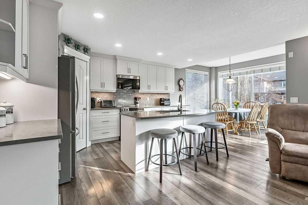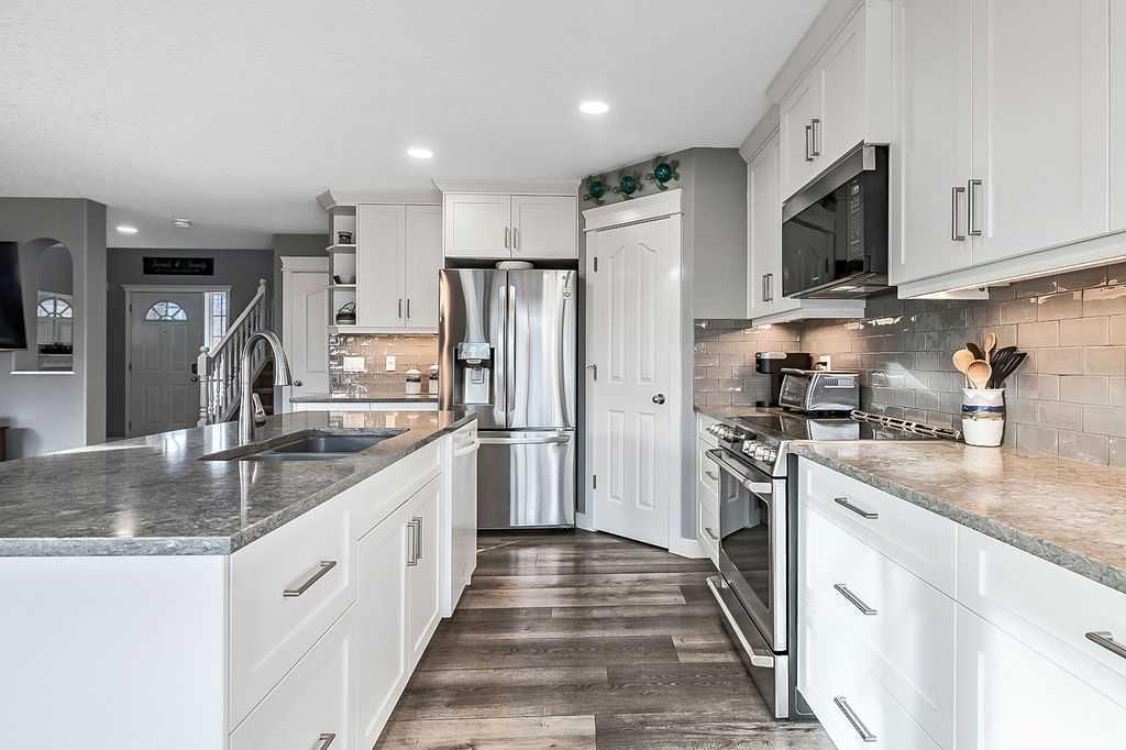 OPEN HOUSE Saturday February 14th 12:00 to 2:30. The street you have been waiting for. Proud original owners, meticulously maintained and thoughtfully updated throughout. As you arrive, notice the updated exterior including siding, 30 year shingles (installed in 2013), an extended driveway, and extra street parking. This is a desirable corner lot with no sidewalks to shovel. A quaint front patio invites you to enjoy the front yard, friendly neighbours, and strong sense of community. Step inside to fresh paint, knockdown ceilings, and vinyl plank flooring that flow seamlessly through the main level. The open concept living area has been beautifully updated with a sparkling white kitchen, perfectly contrasting backsplash, and quartz counters. The refrigerator, induction stove, and microwave have all been updated. A large walk-in pantry features solid shelves and drawers to keep everything neat and organized. East facing windows allow the morning sunshine to pour in while offering lovely views of the backyard and green space. A two-piece bathroom and convenient main floor laundry, complete with a Bosch washer and dryer, are perfectly tucked away. Upstairs, the vaulted bonus room features a huge west facing window and a door that keeps sound contained while others are sleeping. Central air conditioning ensures comfort year round with all of these expansive windows. The second wing of the upper level offers generous secondary bedrooms and a renovated four-piece bathroom. The primary bedroom is a true retreat with a renovated ensuite designed two steps up, complete with an added privacy door that was not part of the original builder plan. The walk-in closet is impressively large and hard to outgrow. The basement development feels brand new and has been gently used. It offers excellent additional living space with a family room, bedroom, and fourth bathroom, making it ideal for guests or teens wanting their own space. Take a peek in the garage and you will notice it is as tidy as the home. Epoxy flooring makes clean up easy, with plenty of room for two vehicles. The backyard is just as impressive, featuring a large deck, fire pit area, and RV parking pad. Underground sprinklers include a timer and online access via the Hydrowise app. Celebrate special occasions or cheer on your favourite sports team with Trimlights permanent under eave exterior lighting. This home is truly move in ready, and only one lucky buyer will have the opportunity to call it theirs.