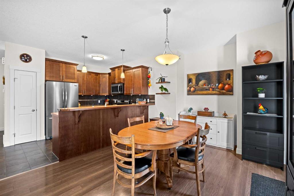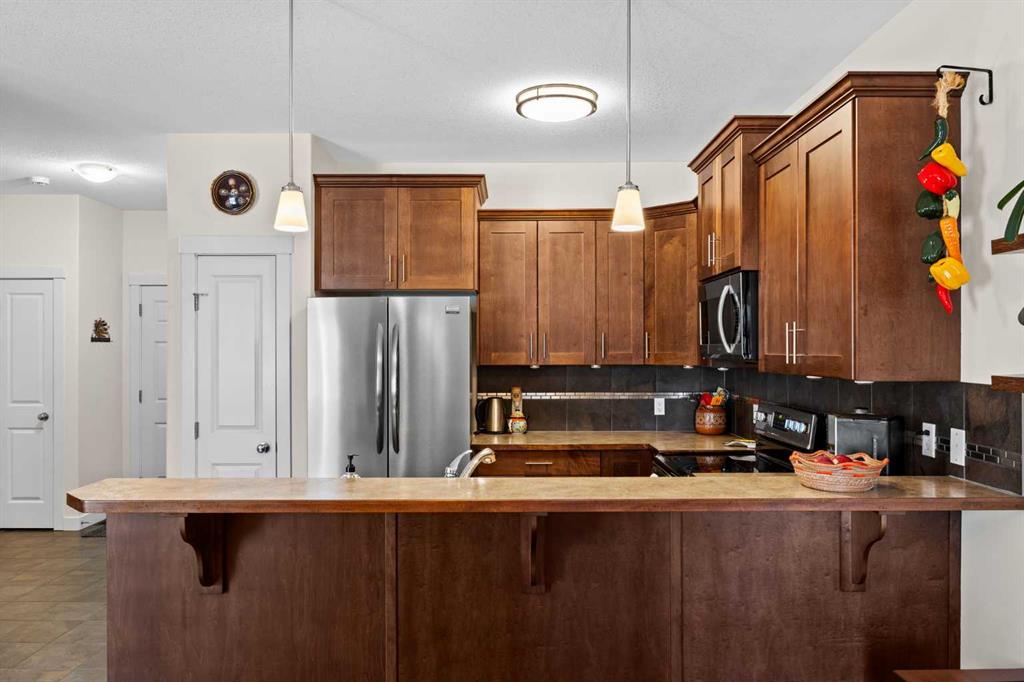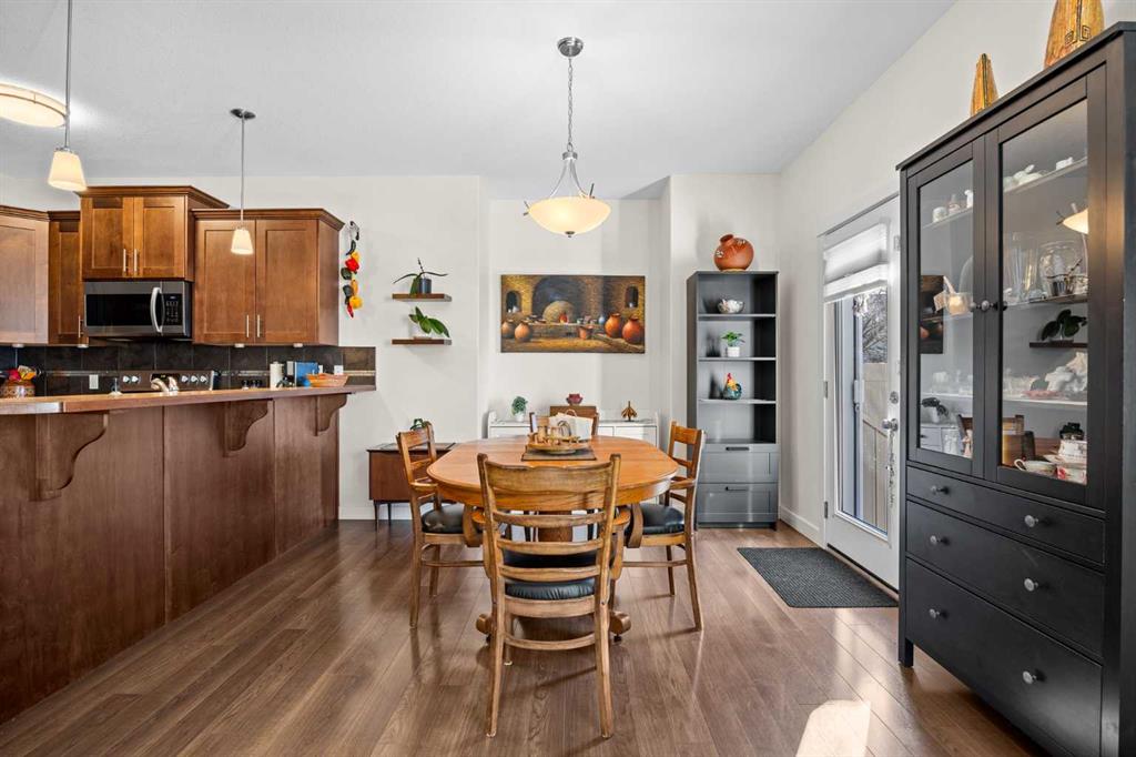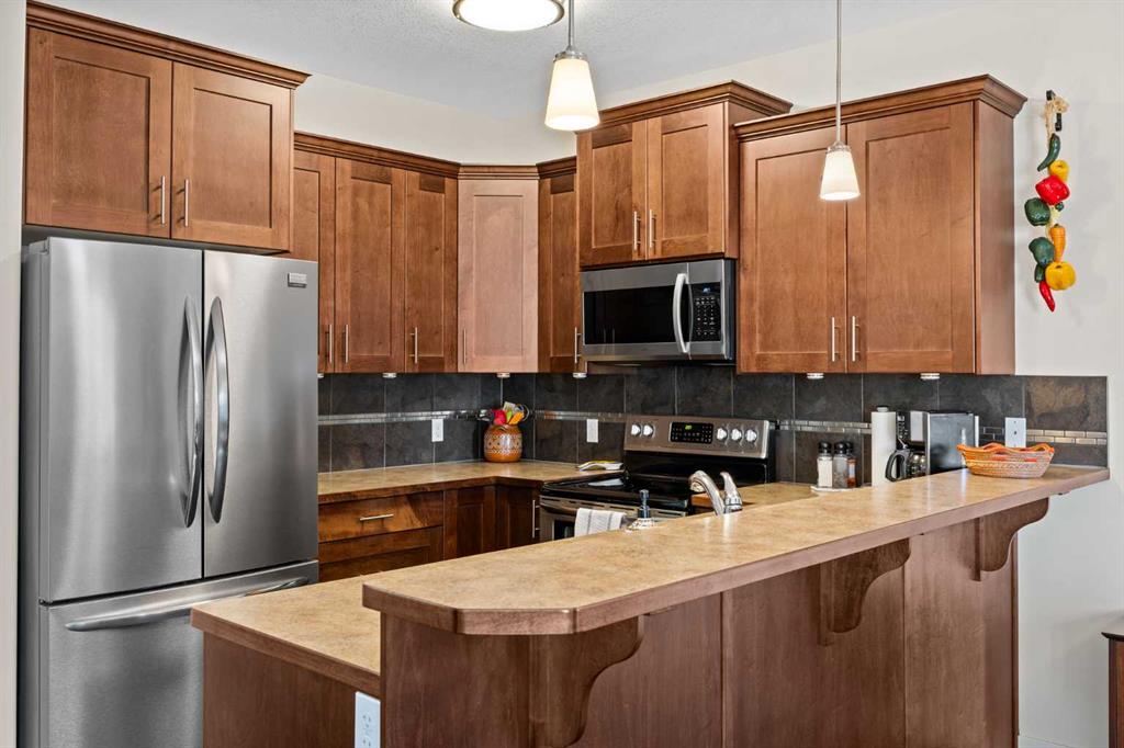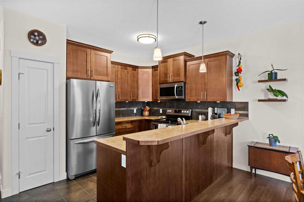 The main floor is bright, open, and built for real life. Durable laminate flooring, a warm and inviting living room with a GAS FIREPLACE, and CUSTOM BUILT-INS that make the space feel polished and functional. The dining area opens to your WEST-FACING BACK PATIO where you can soak up that AMAZING WEST SUN with nothing but GREEN SPACE behind you. And yes — there’s a GAS LINE for the BBQ.