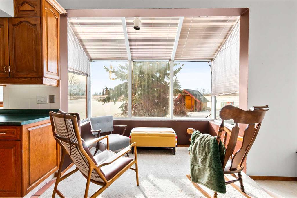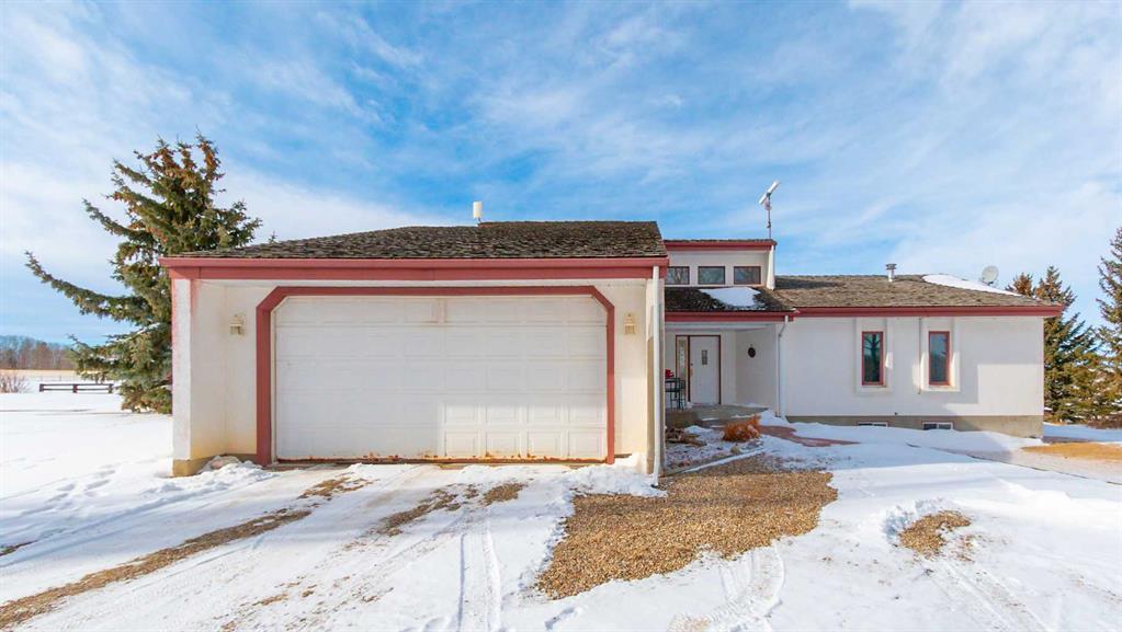 A rare opportunity to own a truly stunning and unique rural property nestled on 148.29 ACRES of picturesque Alberta countryside. This WALKOUT BUNGALOW offers space for everyone with 3 bedrooms and 2.5 bathrooms up and 1 bedroom and a 3-piece bathroom down. The original owner, CUSTOM BUILT HOME is complete with tons of Natural Light throughout the unique vaulted ceiling Great Room- tying together a large Living Room, Country Kitchen complete with a PANTRY & ISLAND and 2 Dining area Options. Patio doors lead you to the partially covered west facing DECK with gas for a BBQ overlooking the yard. Downstairs find large rooms including an office, cold room & family/hobby room. This exceptional offering is located just outside the charming town of DIDSBURY, combining the serenity of rural living with convenient access to major centres such as Calgary, Red Deer. Located adjacent to the Town limits of Didsbury, this property offers opportunity for potential future development & is an ideal setting for families, hobby farmers, or agri-business. Didsbury boasts: Three schools, a hospital, RCMP detachment, indoor swimming pool, curling rink, two surface ice arena, golf course, ball diamonds, skate park, and walking trails. Outside, enjoy unobstructed west-facing ROCKY MOUNTAIN VIEWS and wide open spaces, a perfect blend of functionality, beauty, and lifestyle. 2 Gravel driveway options with an island turnaround, a shelter belt of mature and ornamental TREES, built-in firepit area, playset, RV parking with water and power hookups and various parking opportunities. Features: 50x50 SHOP (1990): Metal clad, insulated & drywalled with concrete floor, radiant heat, water access and a 10x50 mezzanine. BARN (1995): Post & Beam construction Mixed use land offering 8+/- acres of yard, 55 +/- acres of CROPLAND & 85 +/- acres of PASTURE, native trees and wetland. Whether you\'re looking to expand your AG operations, start a rural lifestyle or invest in Alberta land, this property is the perfect fit.