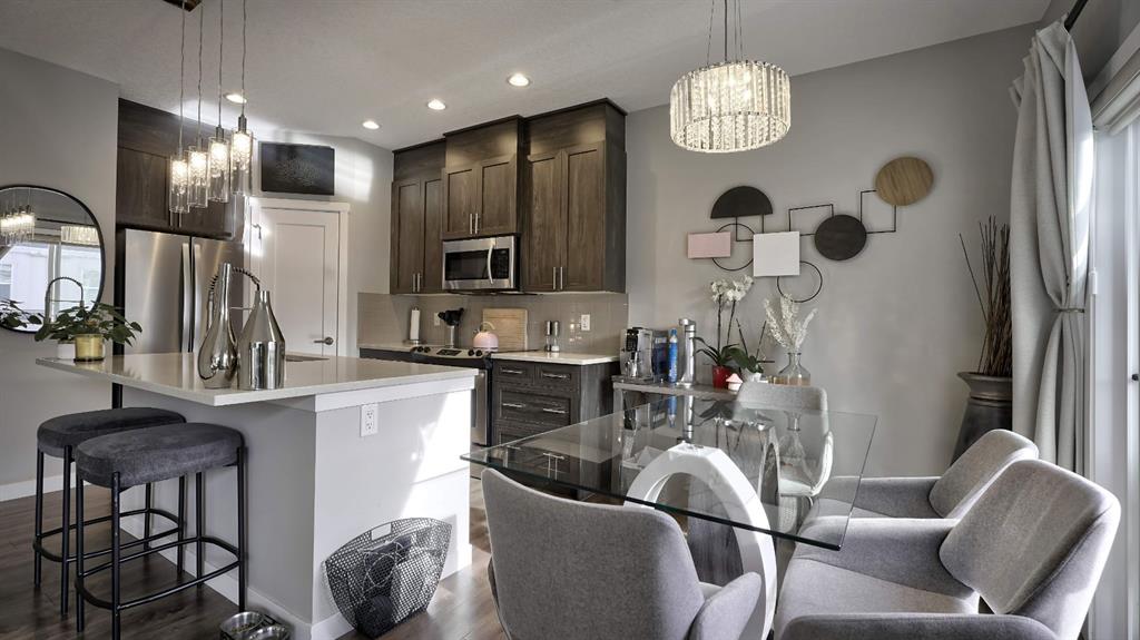 Welcome home to this immaculately kept modern townhome in Nolan Hill. This town home with over 1200 square feet of living space is the perfect blend of comfort and convenience, just minutes away from shops, parks, walking paths and a brand new school! Showcasing 2 bedrooms, 2.5 bathrooms, and a single front attached garage, this property is perfect for professionals, small families, or anyone seeking a comfortable and stylish living space. Walking in you are immediately greeted by the open floorplan, seamlessly connecting the living, dining, and kitchen areas. The kitchen is a chef\'s dream, featuring a sleek kitchen island and luxurious quartz countertops with plenty of storage in cabinets and the corner pantry. Moving upstairs, the primary bedroom is a true retreat with its automatic window coverings and cozy balcony. The primary bedroom is accompanied by a walkthrough closet with tons of storage and completed with an ensuite bathroom, providing a private oasis for relaxation and rejuvenation. The additional bedroom is spacious and versatile - currently being used as an office but there is plenty of space to make this your own. This bedroom has direct access to another full bathroom showcasing a soaker tub meant for relaxation. Now to focus on the community, Nolan Hill is a highly sought after community that houses any and all amenities that you could need - retail stores, restaurants, child care and so much more. There is a brand new K-9 school being built in the community so this is the perfect space for the family! It also boasts direct access to major routes to leave the city or make your way to down town Calgary. Deerfoot Trail and Stony Trail are right around the corner. Commuting from this area is a breeze! Don\'t miss out on the opportunity to own this exceptional townhome in Nolan Hill. With its modern features, prime location, spacious living area, and comfortable living spaces, this is the perfect place to call home. Contact me to schedule a showing today!