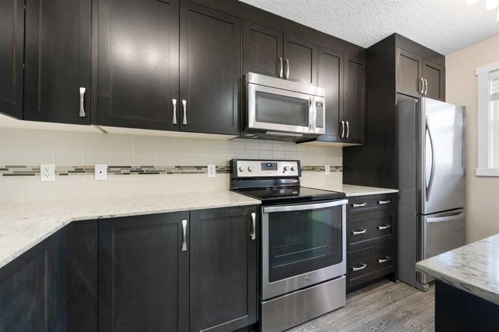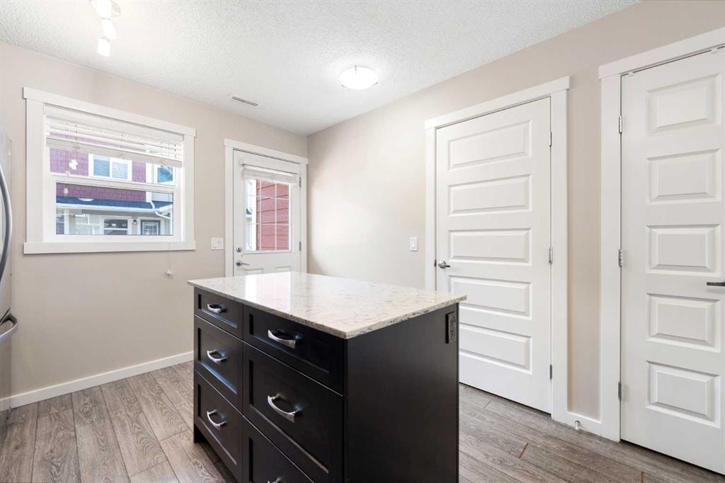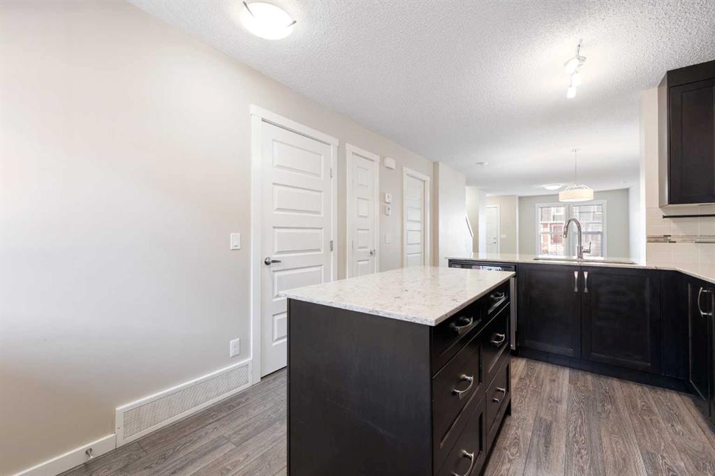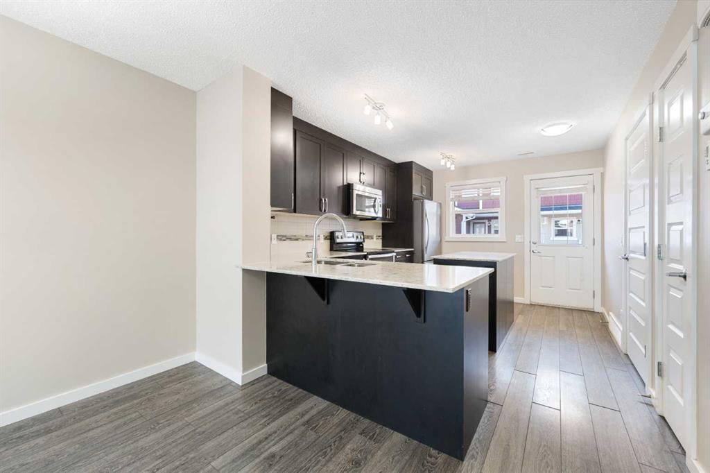 The main level showcases an inviting open-concept design, seamlessly connecting the living, dining, and kitchen areas—ideal for both entertaining and daily life. The modern kitchen is beautifully appointed with sleek quartz countertops, ample cabinetry, a central island for gathering or meal preparation, and a spacious pantry for added storage. A convenient 2-piece powder room completes the main floor. From the kitchen, step outside through the rear door to your private, fully fenced yard—perfect for relaxing, barbecuing, or enjoying outdoor time with pets. Adding to the home’s convenience, the assigned outdoor parking stall is located directly outside your door, making daily arrivals and departures simple and stress-free. This well-managed complex offers low condo fees, providing excellent value and peace of mind for homeowners. Pride of ownership and thoughtful maintenance are evident throughout the community. Location is truly a standout feature. Residents enjoy close proximity to schools, parks, shopping, and everyday amenities, along with quick access to major routes including Stoney Trail and Deerfoot Trail for an easy commute. You’re also just minutes from the South Health Campus hospital and the YMCA, making health, recreation, and convenience part of your everyday lifestyle. Best of all, experience four-season lake living with access to Auburn Bay Lake—offering year-round activities from summer beach days to winter skating.