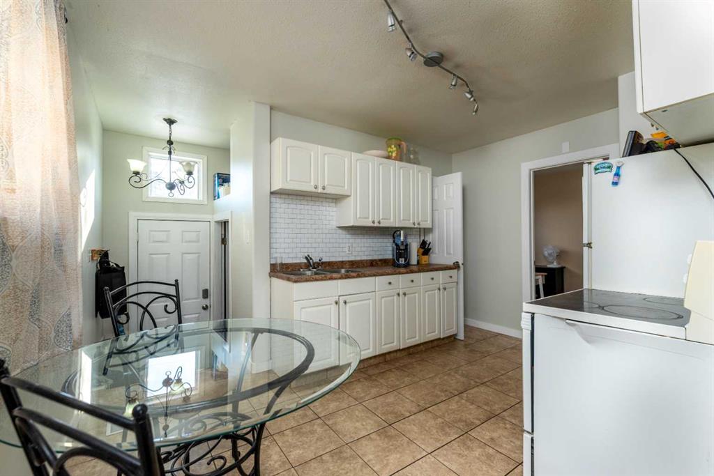 Welcome Home! Here you find a nicely maintained and centrally located starter or investment property. Super cute presence on a tree lined street. Cozy living area and eat in kitchen with two bedrooms and one bath upstairs and a finished basement family room for extra flex space downstairs, this would make a great theatre room or children’s play area. Upstairs has new vinyl plank flooring, and a bright white kitchen with tasteful subway tiles and included appliances. Approximately fifteen years ago this home was fully renovated including vinyl siding and low E Argon windows. Both the front and rear foyers are a generous size to drop off coats and boots. The rear yard is fully fenced with rear alley access, parking for two vehicles and two included storage sheds. Make your move!
