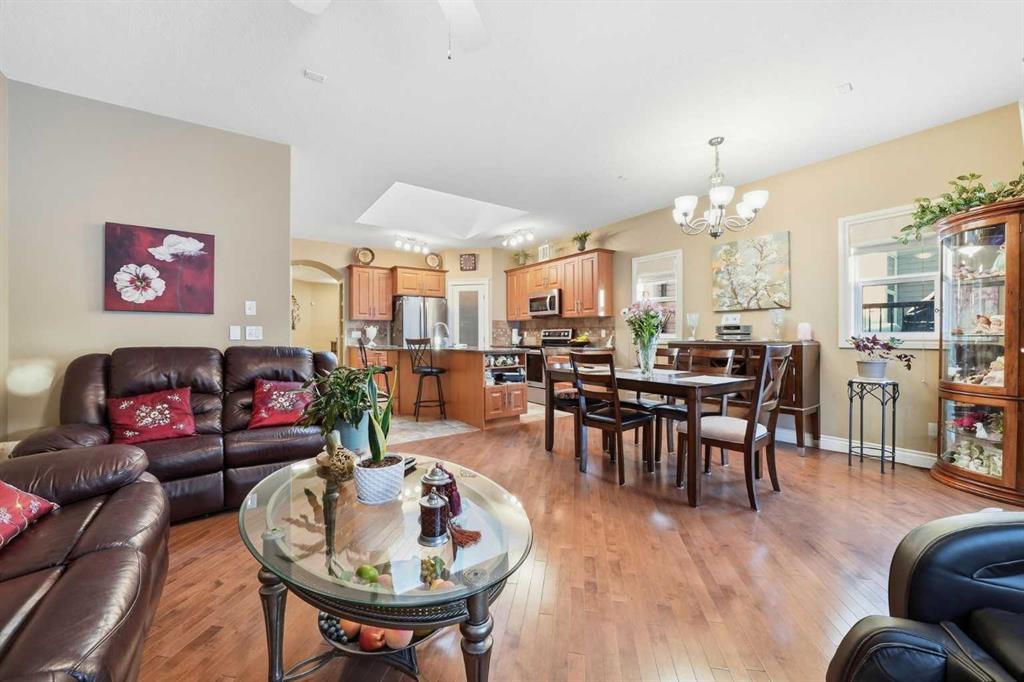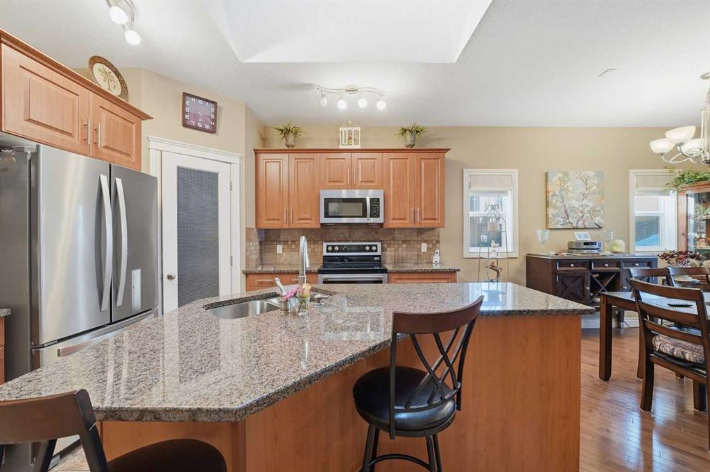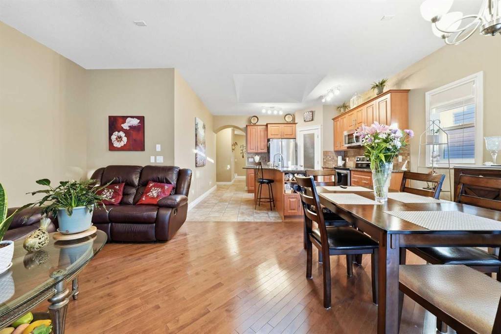 OPEN HOUSE today Saturday Feb 21st and Sunday Feb 22nd. 2-4:30 pm. Welcome to 144 Reunion Close NW, Rarely on the market you find a home in this shape. COME TO MY OPEN HOUSE THIS WEEKEND Saturday and Sunday Feb 21st and Feb 22nd 1-4 pm. This is a beautifully maintained bungalow offering 1,275 sqft above grade plus a fully developed 1,016 sqft basement level, in the heart of Reunion. Step inside to a welcoming foyer with a convenient closet for outerwear and direct access to the double attached garage, making winter mornings effortless. The open-concept main floor is bright and inviting, featuring a cozy gas fireplace in the living room, a cozy dining area, and sliding patio doors that lead to the expansive covered deck overlooking a beautifully landscaped backyard with raised garden beds and mature trees. The kitchen is both stylish and functional, complete with a granite island with breakfast bar seating, stainless steel appliances, a large corner pantry, and tile flooring. The main level features One bedroom and a den or guest bedroom, including a generous primary suite with a walk-in closet and private 3piece en-suite, along with main floor laundry and a 2piece guest bathroom. The fully developed basement adds exceptional living space with a large family room finished with a second fireplace, two additional good-sized bedrooms, a full 4piece bathroom, and an office plus plenty of storage. Additional features include, great neighbors, comfort, privacy, and outstanding value in a family-friendly community. This is a must-see property! Don\'t miss out and come view today!