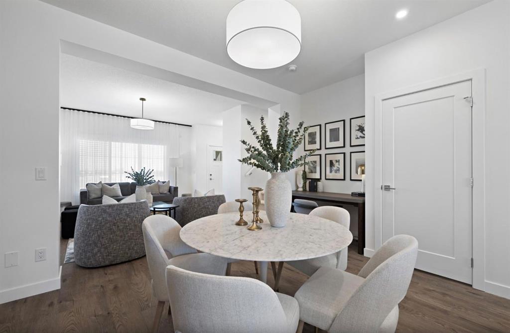 Thoughtfully designed with contemporary architecture and refined finishes, this home offers a bright, open-concept layout that effortlessly supports modern living. The main floor is elevated by soaring 9\' ceilings and durable luxury vinyl plank flooring, creating a seamless transition between the living and dining spaces—ideal for both relaxed family time and entertaining.