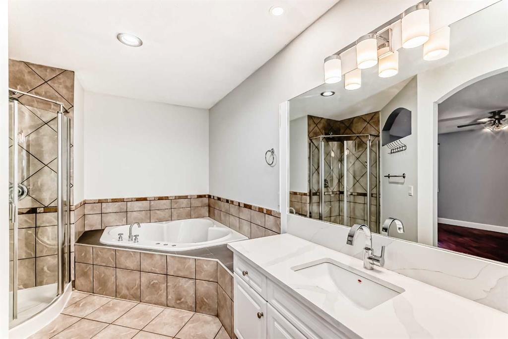 | 5 BEDS | 3 BATHS | WALKOUT BASEMENT / SEPARATE ENTRANCE | TRIPLE CAR GARAGE | CORNER LOT | Convenient Location! | Welcome to this beautiful 5 bedroom, 3 bathroom home located in the community of Lakeside Greens, offering over 3000 sq ft of living space. Vaulted ceilings greet you upon entry, creating a bright and airy feel throughout the main level. The spacious living room features a cozy fireplace and large windows that fill the home with natural light. The open-concept kitchen is perfect for entertaining, complete with stainless steel appliances, quartz countertops, a matching large center island with breakfast bar seating, and plenty of cabinet space. The dining area provides direct access to the outside deck, ideal for summer barbecues and outdoor gatherings. The main level also features a large primary bedroom with its own 4-piece ensuite, along with an additional bedroom and a full 4-piece bathroom. Downstairs, the fully developed walkout basement with separate entrance offers a large recreation/living area with a beautiful fireplace and sliding doors that lead directly outside to the backyard. Three additional good-sized bedrooms and a 3-piece bathroom complete the lower level. Situated on a corner lot, the home features a large fenced backyard and a triple car garage with plenty of additional parking. Located just steps from Lakeside Golf Club and minutes to Chestermere Lake, shopping, schools, playgrounds, and more. Do not miss this opportunity. Call your favourite agent to book a showing today!
