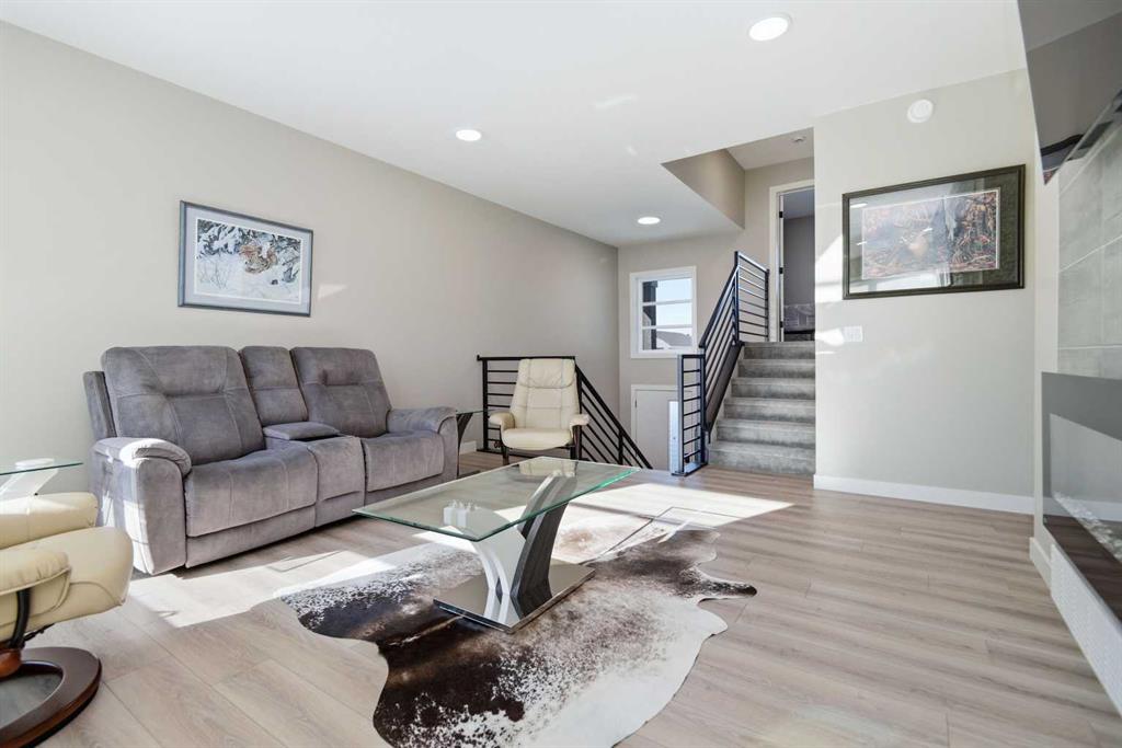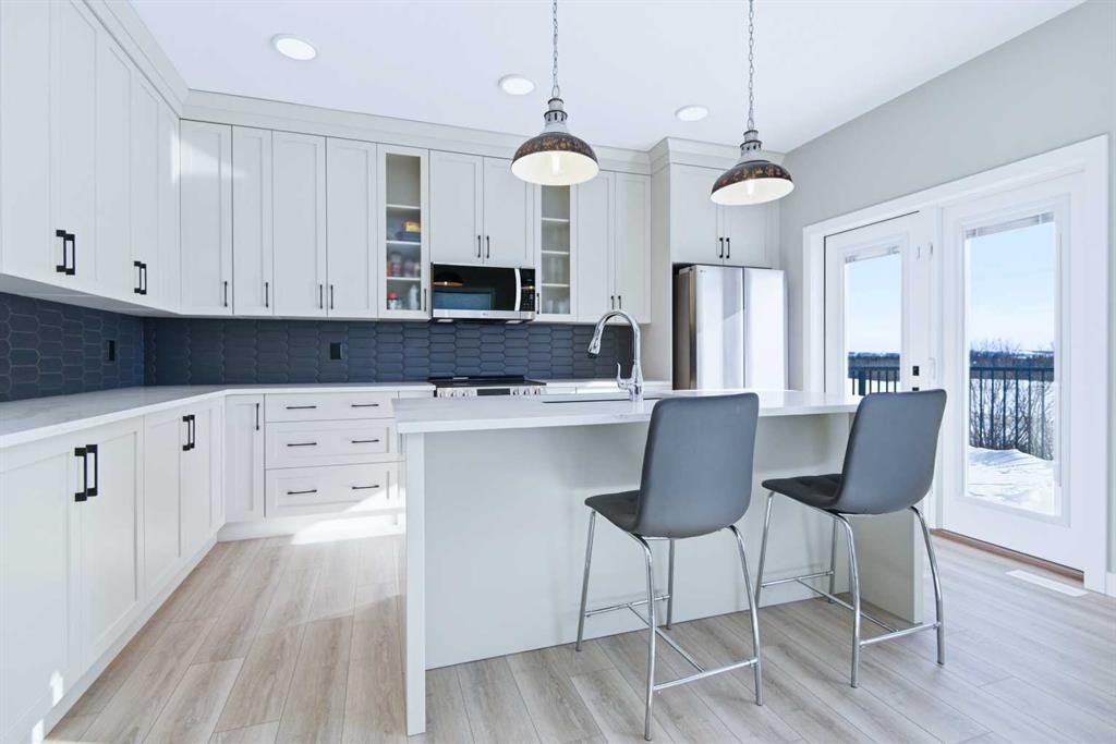Welcome to this beautifully maintained 2024 modified bi-level in the desirable McKay Ranch subdivision of Blackfalds. Situated on a quiet, family-friendly street on the southeast edge of town, this home offers added privacy with no immediate neighbors behind, walking trails just steps away, and open field views beyond — all with convenient highway access for commuters. Still showing like new, the bright open-concept layout is thoughtfully designed for modern living. The kitchen features light contemporary cabinetry extended to the ceiling, beautifully contrasted by a stylish black backsplash and high-end appliances. A spacious center island with a black undermount sink and breakfast bar creates the perfect gathering space. Patio doors lead directly from the kitchen to the south-facing deck, ideal for enjoying sunny afternoons and peaceful surroundings. The inviting living room showcases an electric fireplace with a sleek tiled surround. The main floor is completed by two functional bedrooms, a 4-piece bathroom, and convenient main floor laundry. Upstairs, the private primary retreat offers generous space, an oversized walk-in closet, and a spa-inspired 5-piece ensuite featuring dual sinks, walk-in shower and a deep soaker tub — the perfect place to unwind. The undeveloped basement is ready for your future vision, whether that’s additional living space or custom design to suit your needs. Outdoors, the permanent Gemstone lighting adds a fun and effortless way to celebrate every season and holiday.