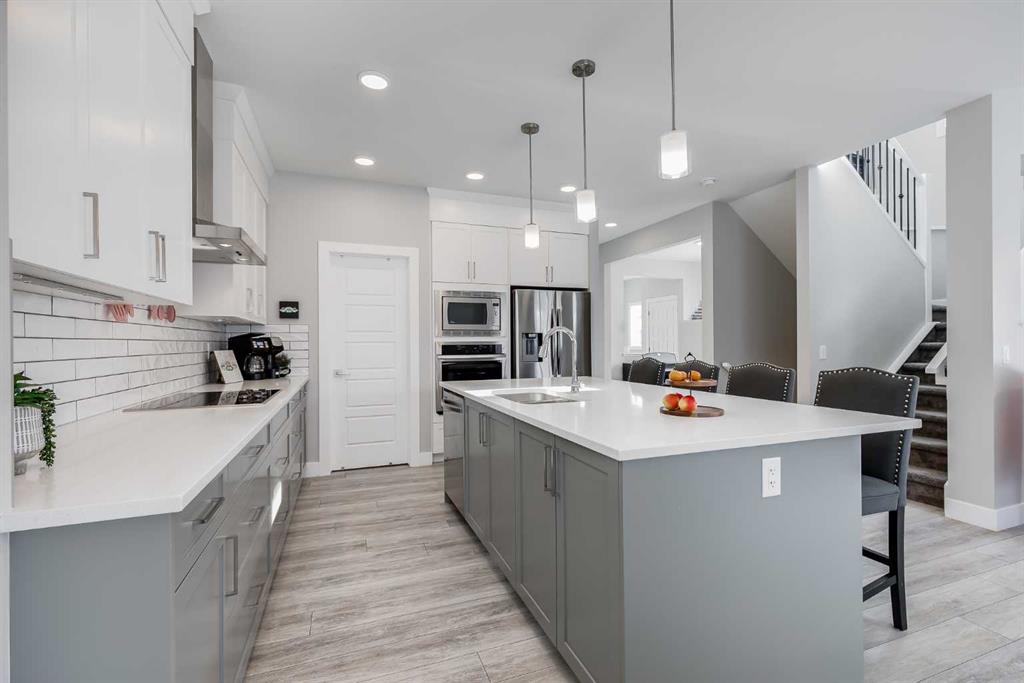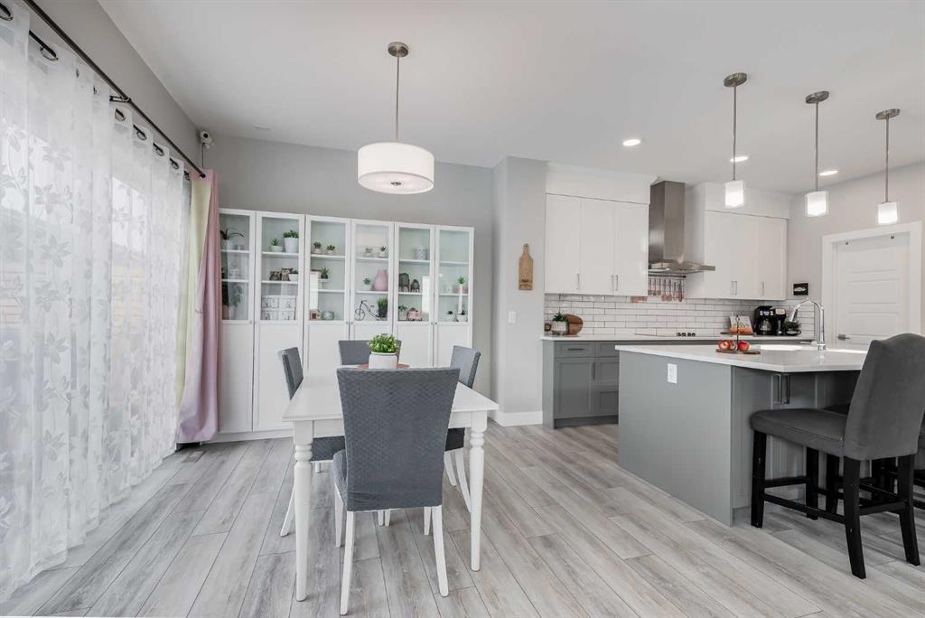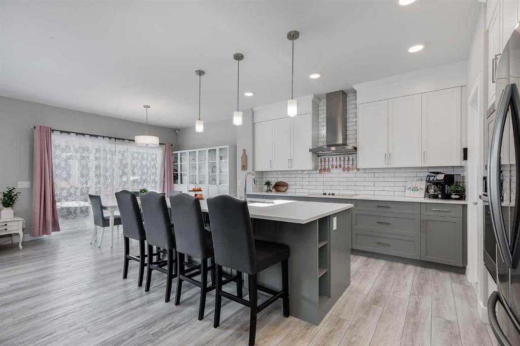 Nestled in the vibrant, family-friendly community of Chinook Gate, this home, built by Excel Homes in 2023, offers 2,375 sq ft of thoughtfully designed living space on a corner lot with a double attached garage. With serene pond views and scenic walking paths, it combines modern comfort with an exceptional location, just steps from parks, playgrounds, and all the amenities a growing family could want. Inside, a welcoming entryway with soaring 9’ ceilings sets the tone for the main floor, where luxury vinyl plank flooring and abundant natural light create an open, airy feel. A flexible front room offers a home office, sitting area, or formal dining space, adapting easily to your lifestyle. The heart of the home is the open-concept kitchen, dining, and living area. The kitchen impresses with crisp white upper cabinetry paired with grey lower cabinetry, quartz countertops, a stylish backsplash, stainless steel appliances, and a spacious island with seating. A walk-in pantry and plentiful counter and cupboard space ensure functionality meets style. The dining area accommodates family meals or entertaining, while the living space provides a comfortable place to unwind. Sliding doors open to the expansive west-facing deck, extending the living space outdoors. A powder room and mudroom complete the main level. Upstairs, plush carpeting adds comfort throughout, and the bonus room with vaulted ceiling provides a bright, versatile space for movie nights, play, or quiet relaxation. The primary retreat features a walk-in closet and a luxurious five-piece ensuite with dual sinks, a soaker tub, and an oversized shower with built-in seating. Three additional bedrooms, a four-piece bathroom, and a convenient upper-level laundry room make daily living effortless for a busy household. The unfinished basement offers a blank canvas for a future living area, home gym, or extra storage. The backyard is designed for enjoyment and entertaining. A large composite deck is perfect for barbecues, while the hot tub is a showstopper. Less than a year old, this 10–12 person “party tub” is among the largest available and doubles as a splash pool for kids during warmer months. Energy-efficient and costing less than $20 per month to operate, it’s an affordable, year-round addition for relaxation and gatherings. Additional backyard amenities include a trampoline and a gravel pad with RV parking, while a basketball hoop is positioned at the front driveway. The home also features air conditioning and a 220-volt outlet in the garage. Chinook Gate offers a lifestyle of ease and recreation. Quick access to 8 Street, Yankee Valley Blvd, and Hwy 2 makes commuting simple, while nearby schools, shopping, dining, and public transit keep daily life effortless. W. H. Croxford High School is close by, and Chinook Winds Regional Park is just steps away, featuring three playgrounds, a skate park, a spray park, multi-use courts, beach volleyball, ball diamonds, a toboggan hill, and outdoor skating in winter.