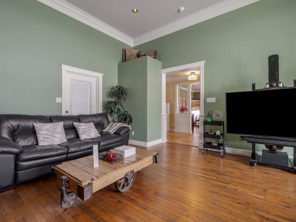 Imagine starting your day surrounded by peaceful views and quiet natural beauty — a distinguished residence in Riverstone where timeless architecture and refined comfort create a home that feels both elegant and welcoming. Custom built and beautifully appointed, this exceptional home captures scenic views of the natural habitat and parkland across, offering a serene backdrop for everyday living. Rich antique oak hardwood floors, soaring 12-foot ceilings, detailed crown mouldings, and a striking custom mantle with gas fireplace showcase exceptional craftsmanship while creating an atmosphere of warmth and quiet sophistication. Thoughtfully designed with beautifully defined living spaces — a refreshing alternative to typical open layouts — this home offers inviting rooms to gather, relax, and enjoy. The gourmet kitchen is designed for both relaxed mornings and effortless entertaining, featuring in-floor heating, maple cabinetry with corner pull-outs, an appliance lift, granite countertops, and a tumbled travertine backsplash, with quality finishes carried throughout. The adjoining nook opens to a sheltered private courtyard deck, an intimate outdoor setting perfect for your morning coffee or evenings with family and friends. The main floor also offers a laundry room, 3-piece bath with body jets, and a versatile office or bedroom with direct access to a second deck and south-facing patio, providing multiple outdoor spaces to enjoy throughout the day. The upper level is devoted entirely to a luxurious primary retreat, designed as a private sanctuary with a spa-inspired 5-piece ensuite featuring a 10ft. granite vanity, heated floors, soaker tub, and double shower with body jets. Two walk-in closets, a second laundry area, and a private balcony with tranquil views create a peaceful place to unwind. The fully developed lower level extends the home’s comfort with cork flooring, two additional bedrooms, a spacious family room with a second fireplace, full bath, and media room ideal for family movie nights. With 3596sqft of total living space, exceptional custom construction, and a rare collection of outdoor living areas, this home offers a lifestyle defined by comfort, character, and quiet elegance in one of Riverstone’s most desirable settings — a place to be enjoyed for years to come.