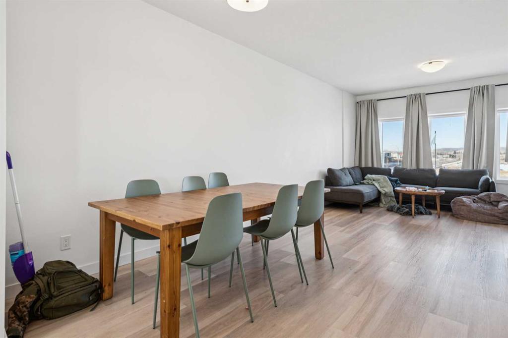 Discover the charm of contemporary living in this thoughtfully designed townhome. Filled with natural light from ample windows, the open-concept layout spans three inviting levels and offers beautiful mountain views. The stylish kitchen includes sophisticated fawn and white cabinetry, quartz counters, a generous island, and stainless steel appliances. Offering 2 bedrooms, 2.5 baths, and a cheerful, versatile den, this home provides flexible living spaces. The primary bedroom boasts ample storage and direct access to the ensuite. A convenient half bath on the main level enhances functionality. Features include vinyl plank floors, upper-level laundry, complete blinds, a single garage, and driveway plus street parking. Enjoy nearby pathways, local shopping, and convenient access to both Calgary and mountain adventures.