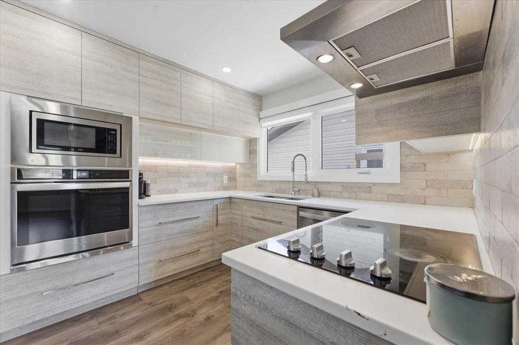 LARGE CORNER LOT | GORGEOUSLY RENOVATED | HUGE 30\' X 25\' WORKSHOP GARAGE | 5 TOTAL BEDROOMS | SEPARATE ENTRANCE | FINISHED BASEMENT WITH KITCHENETTE | SUNNY SOUTH YARD | STEPS TO PARK & GREEN SPACE | Beautifully renovated and thoughtfully updated, this 5 bedroom home offers over 2,170 sq ft of developed living space on a desirable corner lot in Marlborough Park. Wide streets, mature trees and a nearby park just down the road create a welcoming setting with everyday convenience. Inside, gleaming high end laminate flooring flows through an open main floor designed for connection and comfort. An oversized picture window fills the living room with natural light throughout the day while extra pot lights provide warm, even illumination in the evenings. Adjacently the dining space is perfectly positioned for family meals or can easily function as a relaxed TV area depending on your lifestyle needs. Stunningly renovated, the chef-inspired kitchen encourages gathering around the large centre island and features beautiful white quartz countertops, full-height cabinetry for streamlined storage and stainless steel appliances that blend style with function. The primary bedroom offers a calming retreat and includes its own private 2-piece ensuite. Two additional bedrooms are generously sized and share a bright 4-piece bathroom finished in a clean, timeless palette. Fully developed, the basement expands the living space with a large open recreation area that includes a kitchenette and bar setup, creating flexibility for multi-generational living, extended family or comfortable movie nights and games. Two additional bedrooms and a bathroom with dual sinks improve functionality for larger households, while the separate entrance enhances long-term versatility. Loads of outdoor space is both practical and inviting with the full-length poured concrete side yard providing low-maintenance outdoor living ideal for basketball, street hockey or easy access to the oversized double detached garage. An extremely rare MECHANICS DREAM 30\' X 25\' GARAGE that can also be used as a WORKSHOP or anyone with a home based business. Even more outdoor space is found in the sunny south-facing backyard that is privately fenced and offers grassy space for kids and pets to play. Marlborough Park is an amenity-rich community with schools, transit, shopping and dining all nearby, along with an active community centre offering programs and events throughout the year. This home delivers updated style, functional space and everyday convenience in an established and welcoming neighbourhood.