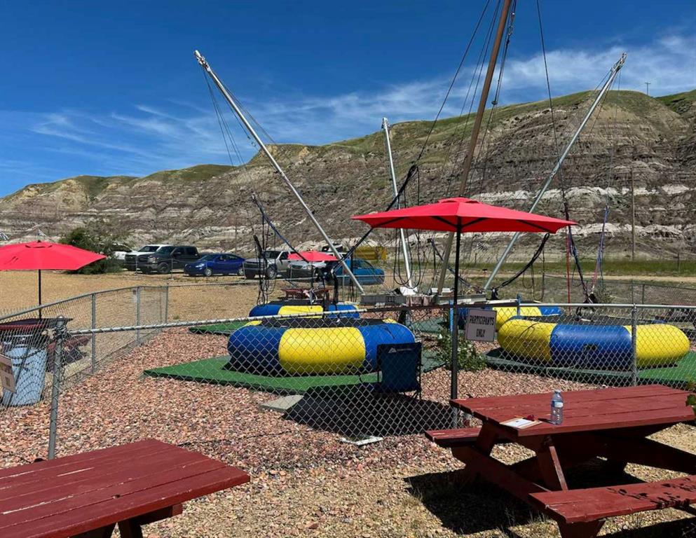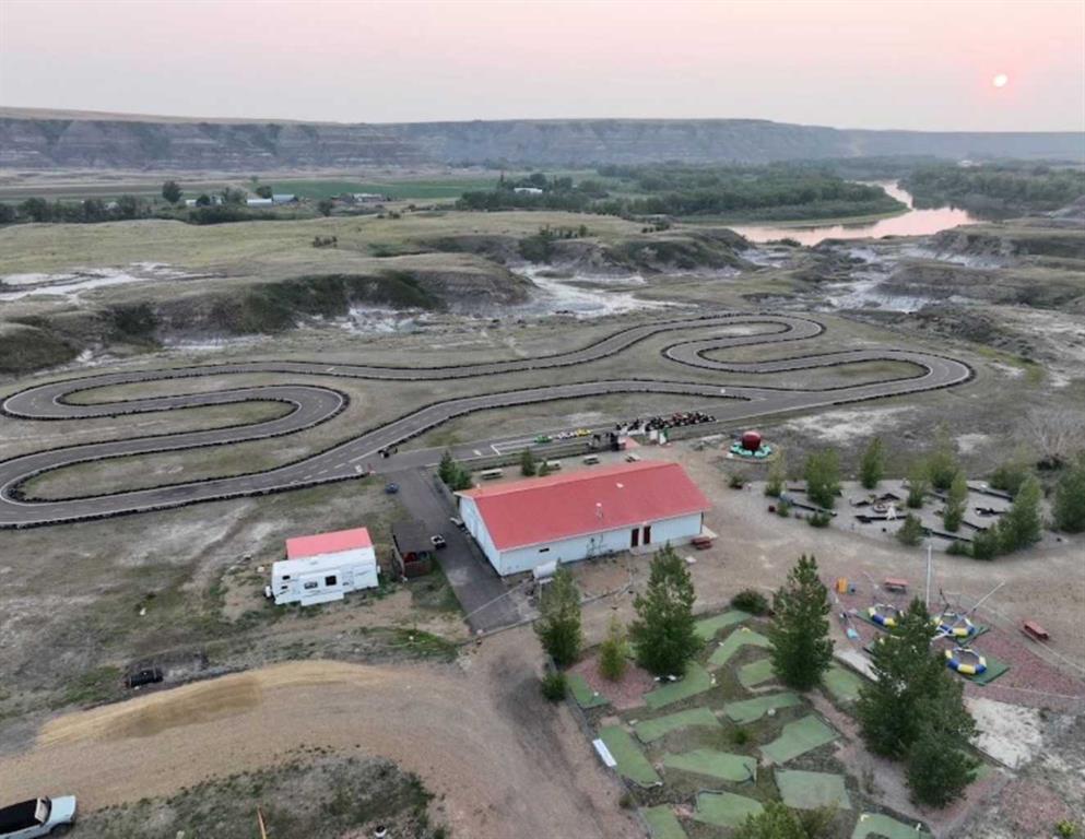 Visit REALTOR® website for additional information. Cactus Coulee Fun Park - 9.94 Acres of Fun & Income! Turnkey family attraction with endless potential! Features include a 1/3 mile go-kart track with 19 go-karts, 18-hole mini golf course, 4-person Euro Bungie, and 38 picnic tables for events. A 2,800 sq ft main building houses a concession, shop, public washrooms with showers, plus staff room & staff bathrooms. Also included: a 24-site campground (power to all, 11 with water), dump station with large septic & freshwater tanks, two above-ground tanks, public bathrooms, and WiFi tower. Extras: 2010 Zinger RV with addition (sleeps 8), tools, MIG welder, 2 lawn tractors, and a 500-gallon fuel tank. There are multiple income streams-attractions, camping, group events, concessions-with room to expand. This is your chance to own a destination business and lifestyle property!. Operating income from previous results, $200,000. Build your dream home (county approval required) overlooking the Red Deer River. Share Sale.