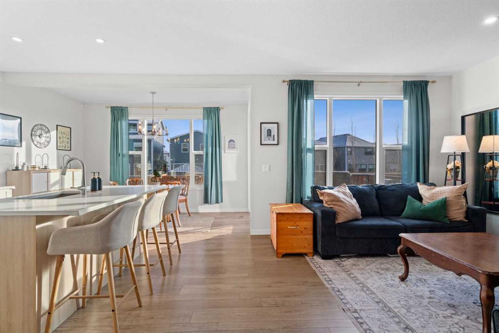 Welcome to 35 Cranbrook Mount SE, a home that surprises you in all the right ways. Tucked into a quiet CUL DE SAC on a pie shaped lot, this unique 3 STOREY home offers space, light, and flexibility that truly sets it apart. Just steps from the Bow River and Fish Creek Park, the setting feels peaceful and connected to nature. Step inside and you immediately notice the elevated features like 9 FOOT CEILINGS, 8 FOOT DOORS, and oversized windows that draw natural light deep into the space. The kitchen is both striking and functional, finished with full height cabinetry, quartz countertops, pot drawers, a beautiful tile backsplash, and sleek pot lighting. At the heart of it all, the island invites gathering, whether it is weekday breakfasts or drinks on the weekend with friends. Tucked just behind, the BUTLER’S PANTRY with open shelving and a sink keeps prep and storage beautifully organized. The dining nook is bright and welcoming, flowing seamlessly into the great room where a striking ELECTRIC FIREPLACE adds warmth and ambiance. A well placed powder room and mudroom complete the main level with everyday practicality. Upstairs, the second floor is designed for real family living. A spacious BONUS ROOM creates the perfect hangout for movie nights or homework sessions. Two generous bedrooms share a full bath with quartz counters, while the primary suite feels like a true retreat. The ensuite features DOUBLE SINKS, a WALK IN SHOWER, a deep soaker tub, and a large WALK IN CLOSET that makes staying organized effortless. Laundry is conveniently located on this level with plenty of storage, a detail you will appreciate from day one. Then there is the third storey. This is where the home becomes unforgettable. A massive bonus space with a wet bar opens onto a covered southwest facing balcony, creating the ultimate lounge for long summer evenings and sunset views. With its own powder room, this level offers flexibility for entertaining, a home office, a games room, or a private escape away from the rest of the house. The unfinished basement is ready for your ideas, whether that means a home gym, additional bedroom, or recreation space. The double attached garage adds comfort and convenience year round. Outside, the pie shaped lot gives you a backyard that feels expansive and private. The large deck is made for morning coffee and summer BBQs, with room for kids to play and friends to gather. Living in Cranston means access to the Cranston Residents Association with its splash park, skating rink, tennis courts, and community events, plus endless pathways along the river and through Fish Creek Park. It is a lifestyle rooted in connection, nature, and community. Homes like this do not come along often. Three finished levels, a CUL DE SAC location, and that incredible third floor retreat make this one truly special. Come see it in person and imagine the memories waiting to be made.