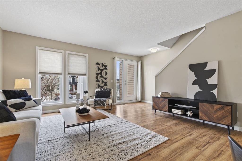 Welcome to a beautifully maintained two-bedroom townhome in the heart of Auburn Bay, thoughtfully designed for modern living and perfectly positioned just a one-minute walk from South Health Campus. As you step inside, you’re greeted by a versatile main-floor office — an ideal space for working from home, a quiet study, or a private retreat separate from the main living areas. This thoughtful separation creates both function and flexibility, particularly valuable for busy professionals balancing work and life. Upstairs, the main living level opens into a bright and inviting kitchen and living space, elevated to capture natural light and create an airy, open-concept atmosphere. The flow is effortless — designed for both relaxed evenings and entertaining. Brand-new carpets installed just months ago add a fresh, polished feel, while tasteful upgrades throughout reflect pride of ownership.