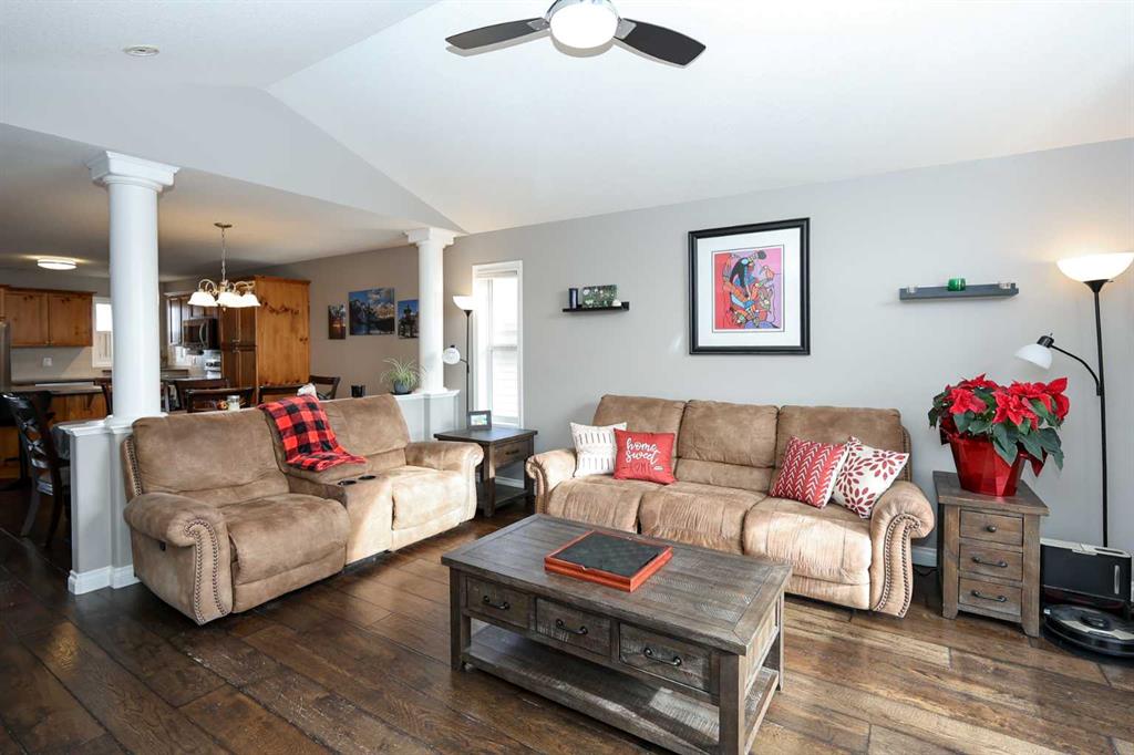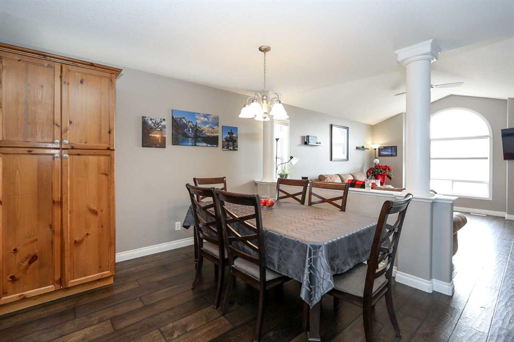 FULLY DEVELOPED 3 BEDROOM, 3 BATHROOM BI-LEVEL ~ WALKOUT BASEMENT ~ HEATED DOUBLE GARAGE & RV PARKING ~ FACING A GREEN SPACE & BACKING ONTO A PARK & SCHOOLS ~ Sunny south facing front yard with raised garden boxes with an irrigation system ~ Covered front veranda welcomes you and leads to a bright and spacious foyer with high ceilings ~ The living room features vaulted ceilings and a large south facing window that fills the space with natural light while offering beautiful park views ~ Architectural columns provide a visually appealing separation between the living and dining space while maintaining an open floor plan ~ The kitchen offers plenty of pine cabinets with crown moulding and built in wall pantry; ample counter space including an island with an eating bar; full tile backsplash; and a window above the sink that overlooks the deck and park ~ Garden door access to the partially covered upper deck that spans the entire width of the home, has a gas line, and offers park views ~ The primary bedroom can easily accommodate a king size bed, has ample closet space, and a 3 piece ensuite ~ Second main floor bedroom is also a generous size and is conveniently located next to the 4 piece main bathroom ~ The fully finished, walkout basement has large above grade windows, high ceilings and operational in-floor heating ~ Family room/den (currently being used as a home office) has board and batten wainscotting and opens to the rec room with plenty of space for a seating area and games table or home gym, plus a separate entry leading to a covered deck (with wiring roughed in for a hot tub), and the backyard ~ 3rd bedroom is conveniently located next to a 3 piece bathroom with a walk in shower ~ Laundry is located in it\'s own room, has a large window and tons of space for storage ~ The backyard is landscaped and fully fenced ~ HEATED 22\' x22\' detached garage with shelving, 220V wiring on it\'s own sub panel, and a workbench (seller will replace shingles on garage before possession) ~ RV parking beside the garage with an easy approach and paved back alley ~ Backing onto Meadowview Park, École Fox Run School and École Mother Theresa Catholic School ~ Easy access to walking trails, more great parks and playgrounds, shopping, dining, and the beach/Lakeshore Drive ~