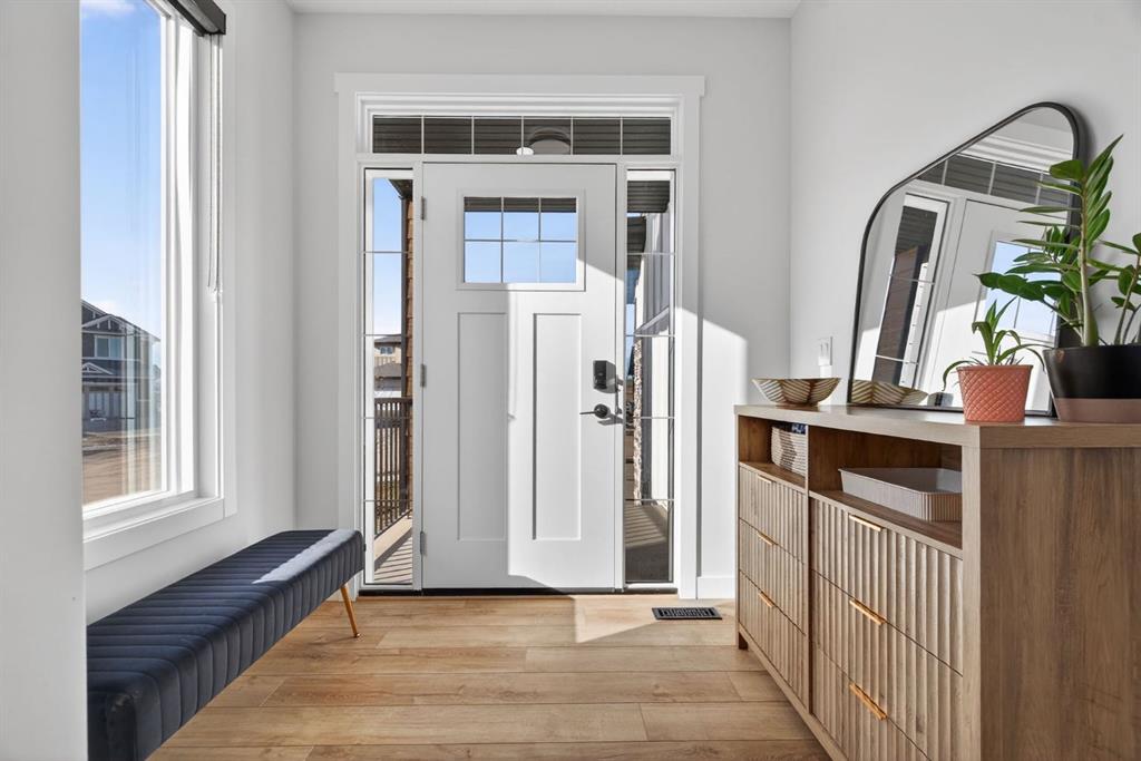 Welcome to luxury in this beautifully designed Trico Westwood model home, offering the highly sought after convenience of a main floor primary suite, presenting the functionality of a bungalow with the added bonus of upper level living.  As you step inside, immediately you notice the bright and welcoming main floor, featuring an open, thoughtfully designed layout.  With 4 additional windows added to the south wall, there’s a ton of natural light, and all are equipped with electric & solar powered blinds on its own wifi system. Then there is the kitchen, a true show piece, complete with ample cabinetry, upgraded Bosch appliances, an Italian gas stove by Fulgor and a pantry for extra storage. Convenient main floor laundry, a 2 piece powder room, and easy access to the double attached garage enhance the home’s practical design.  The standout feature is the main floor primary bedroom retreat, offering privacy and comfort with a walk in closet and a luxurious 5 piece ensuite.  Upstairs, you’ll find two generously sized bedrooms, a full bathroom, and a versatile family room.  And the bonus: a balcony to show off the stunning Rocky Mountain views with a fun vantage point overlooking the D’Arcy Golf Course 2nd tee box.  The fully developed basement expands your living space even further, featuring a massive rec room with multiple functions, two additional bedrooms, a full bathroom, and plenty of storage.  And with 9 foot ceilings and larger windows, this basement feels like anything but a basement.  Outside, there have been many added upgrades to the home exterior as well as a widened front driveway, additional rear gravel parking pad,  a concrete outdoor area with gazebo and gas hook ups not only for your BBQ by the home, but also for a fire table under the gazebo. Situated in the quiet, family friendly neighbourhood of D’Arcy, close to parks, pathways, the golf course and amenities, this home offers the perfect blend of comfort, functionality, and community living.  A rare opportunity to own a move-in ready, highly upgraded home in one of Okotoks’ most desirable neighbourhoods.  Contact your favourite realtor to book a showing today!