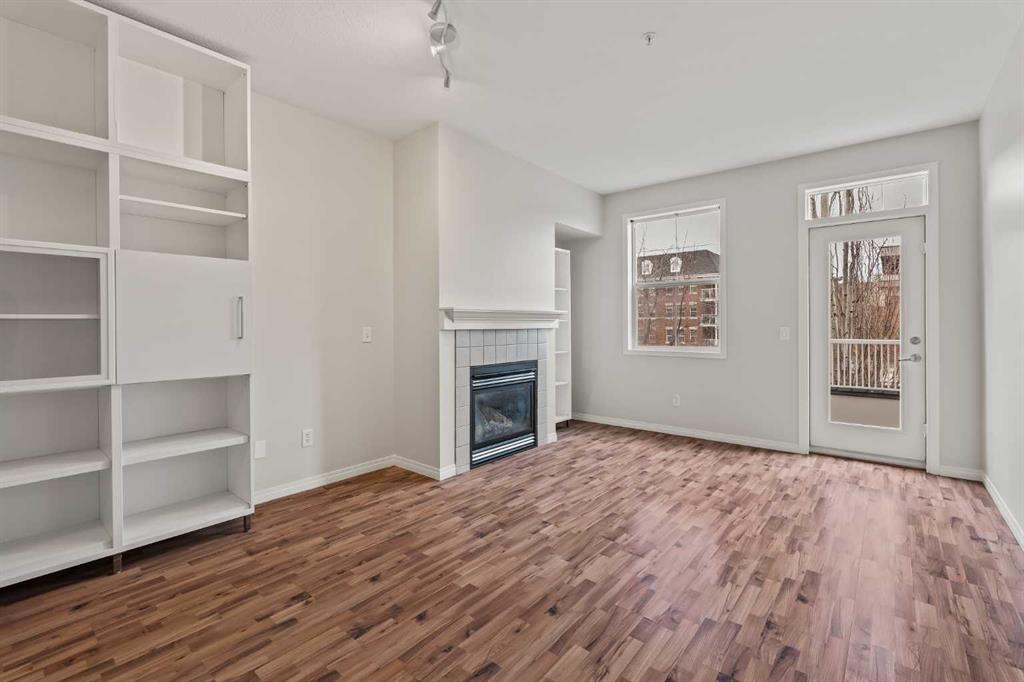 Welcome home to #206 of The Courtyards at Garrison Woods, an exceptional opportunity to live in one of Calgary’s most sought after inner city communities, just steps to the vibrant shops, cafés, and boutiques of Marda Loop. This beautifully appointed 739 sqft one bedroom, one bathroom residence offers an elegant blend of comfort and functionality, ideal for professionals, first time buyers, or savvy investors. Soaring 9’ ft ceilings create an immediate sense of space, while the wide, open concept living room provides exceptional layout flexibility; perfect for both entertaining and everyday living. A cozy gas fireplace anchors the space, adding warmth and ambiance year round. The thoughtfully designed kitchen features a generous peninsula with seating, offering both additional prep space and an inviting gathering spot. Whether hosting friends or enjoying a quiet evening at home, the seamless flow between kitchen and living area enhances the overall experience. Just off of the living room, tucked in behind closet doors, is a built-in desk. This provides options such as working from home (you can close the doors on your office to have it completely separate!), a dedicated beverage station, or additional storage space. The primary bedroom retreat is naturally brightened by two large windows, which provides a sense of serenity and relaxation. The bedroom also includes a convenient walkthrough closet that leads directly into the well appointed bathroom, creating a private, ensuite-style feel. A dedicated in suite laundry room adds everyday practicality, while the private balcony overlooking the beautifully landscaped courtyard provides a peaceful outdoor escape, ideal for morning coffees or unwinding at the end of the day. Residents also enjoy secured, heated underground parking with a car wash bay and storage lockers. Strategically located in the middle of the complex, is an impressive amenities building. Complete with a swimming pool, fully equipped fitness area, party room, and guest suites - an extension of your living space that enhances both lifestyle and convenience. Units in this building rarely come up, as it is unique to find this style of complex (adults 18+ and separate amenities building), tucked in from behind the hustle and bustle of Marda Loop. All of this, just a five minute stroll to the best of Garrison Woods and Marda Loop - trendy restaurants, specialty grocers, fitness studios, and everyday essentials - offering an unmatched walkable urban lifestyle in one of Calgary’s most established and charming neighbourhoods. Fantastic value in this wider than your average one bedroom, one bathroom unit, with reasonable condo fees that include all the amenities. Contact your favourite realtor to schedule a private showing, and make #206 your new home!