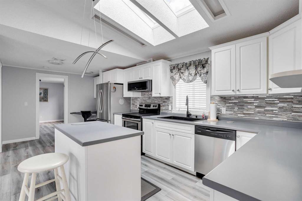Beautifully maintained | Numerous updates | Ample parking. Welcome to 125 Mckinlay Crescent. This move-in-ready home offers 1,530 sq ft of living space, including 3 bedrooms, 2 bathrooms, and a bonus rec-room with kitchenette. An open-concept, bright main area features an updated skylight (2023), a large picture window, and modern luxury vinyl plank flooring throughout (2024). The open kitchen boasts stainless steel appliances, upgraded light fixtures, and a modern updated sink, adjacent to the dining area with storage, glass display cupboards, and access to a spacious deck.The primary bedroom, with its own 4-piece ensuite, provides privacy and a peaceful retreat. A separate laundry area adds extra storage and leads to the back deck. The opposite end of the home can be fully separated, including 2 bedrooms, a 4-piece bathroom, and a living area with kitchenette. Step outside to a large deck with a gas line hookup for BBQs, perfect for summer gatherings. The fenced yard offers privacy and features a storage shed tucked behind the home. Front parking is generous enough for your camper or multiple vehicles. Recent upgrades include shingles (2023), skylight (2023), furnace (2024), LVP flooring (2024), newer light fixtures, toilets, kitchen sink, faucets, and serviced AC. If you’re seeking a turnkey home with major updates done, check out our online virtual tour and call today to schedule your private showing!