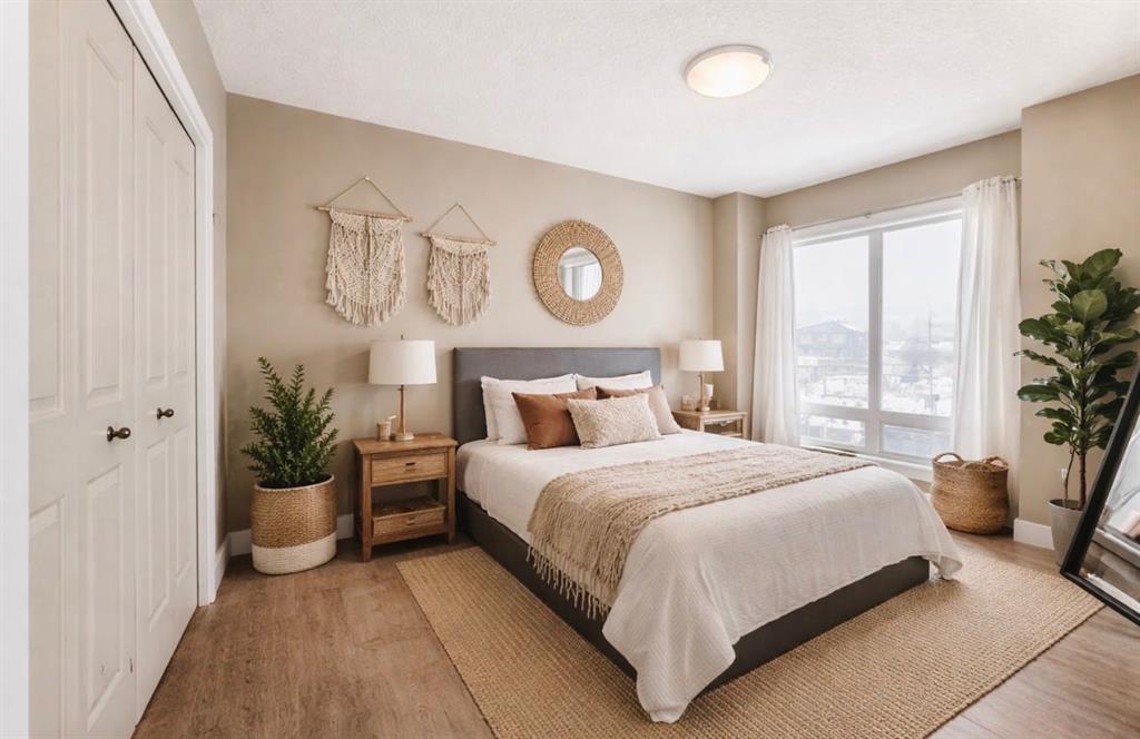 The primary suite is a standout, offering enough room for a king bed and a super generous walk-in closet. A well-sized second bedroom provides flexibility for guests, a home office, or shared living.