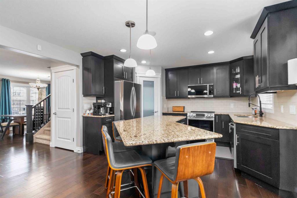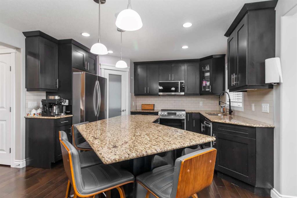 OPEN HOUSE SATURDAY, FEBRUARY 21ST 12-2 PM. RARE OPPORTUNITY! FORMER ALVES SHOWHOME, TRIPLE CAR GARAGE, GREENBELT VIEWS AND AN INCREDIBLE BACKYARD OASIS FULLY FINISHED, IN-FLOOR HEAT. Welcome to 409 Loutit Road, an exceptional family home where elite craftsmanship meets an unparalleled outdoor lifestyle. Tucked away at the end of a quiet road bordering the trail system, this rare gem offers privacy and nearly 3,200 sq/ft of sophisticated living space that has many high ticket updates completed recently that include brand new kitchen appliances, new water softener (2025), insulation levels brought to a R Value of R60, additional whirly birds added to roof, artificial turf added to the backyard, and more. Let\'s begin with the ideal location of this home, situated in Eagle Ridge at the bottom of Loutit Road, where we rarely see homes come to market, and only steps away from two elementary schools, with quick access to walking trails, site and city bus stops, and amenities. Now let’s talk about the outside of this home, first you have the rare find of an attached heated Triple Car Garage with in-floor drain, extra wide front driveway, front veranda, and the custom-designed and professionally completed backyard that is fully fenced and backs the Greenspace and Birchwood trails. This space offers a large 2-tiered deck with a covered area for your BBQ, built-in eat-up Bar, open and close shutters for privacy, detailed privacy walls, and built-in and automated lighting throughout, and an additional area to entertain with a built-in stone-faced outdoor gas fireplace, all surrounded by beautiful landscaping incl. Russian Maples that turn Red in the Fall and artificial turf on both sides of the home. Inside this 6-bedroom 4 bath home, you enter a large front foyer that offers a formal front dining or a versatile space to meet your family\'s needs. In addition, a main floor office/4th bedroom. The main level with luxury finishings incl. hardwood floors, spacious kitchen with granite countertops, eat-up bar, corner pantry, a dining nook that overlooks your yard, and your great room with a gas fireplace. The main level is complete with a 2 pc powder room and a separate main-floor laundry room. The upper level features a large landing that overlooks your main level, a massive primary bedroom retreat that offers a walk-in closet, corner gas fireplace, reading nook, and stars a 5-pc ensuite with walk-in shower, double sinks, and a jetted tub. The fully finished basement is your space to entertain in the winter. Featuring a custom sit-up bar with built-in fridge, large family room, and games rooms, then 2 additional bedrooms and a full bathroom, all with the comfort of INFOOR HEAT. Additional features are Central a/c and built-in speakers throughout the home that comes with a Sonos system and an exterior built-in holiday lights. You have now found the ultimate family home. All today for your personal tour.