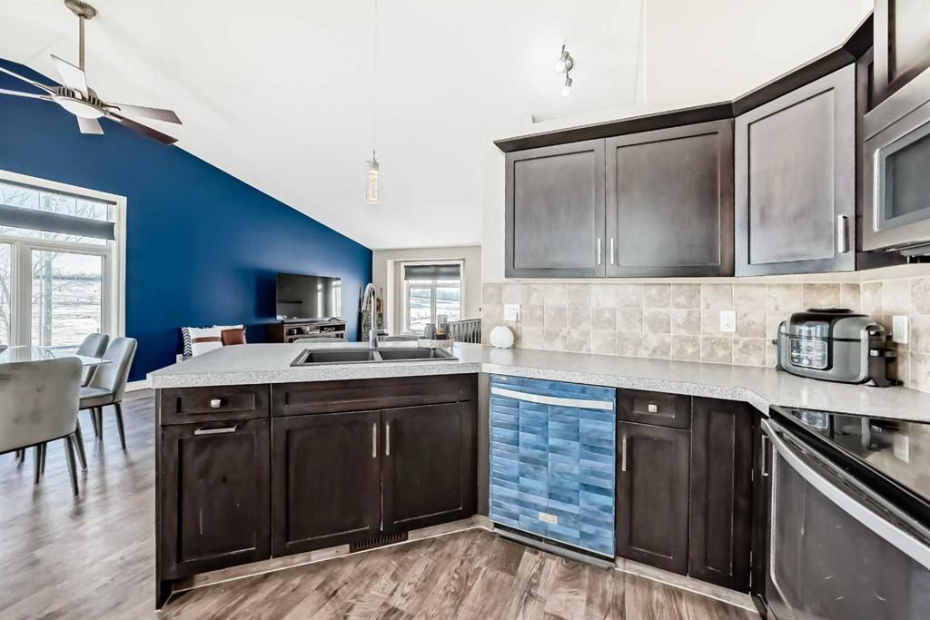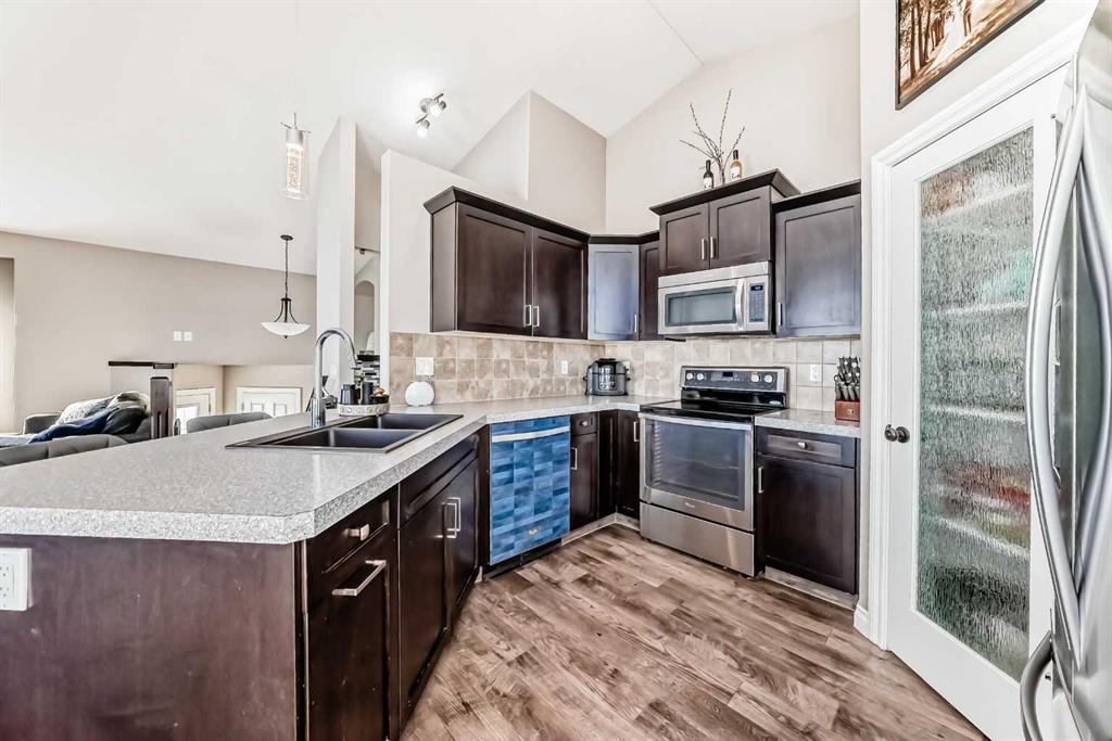 This like new home features a wide open floor plan with vaulted ceilings and large windows that fill the space with natural light while showcasing the incredible views. The main floor offers two bedrooms, including a spacious primary with a 3 piece ensuite, along with a 4 piece main bathroom. The kitchen is designed for both function and style with modern dark cabinetry, ample counter space, a pantry, and quality stainless steel appliances.