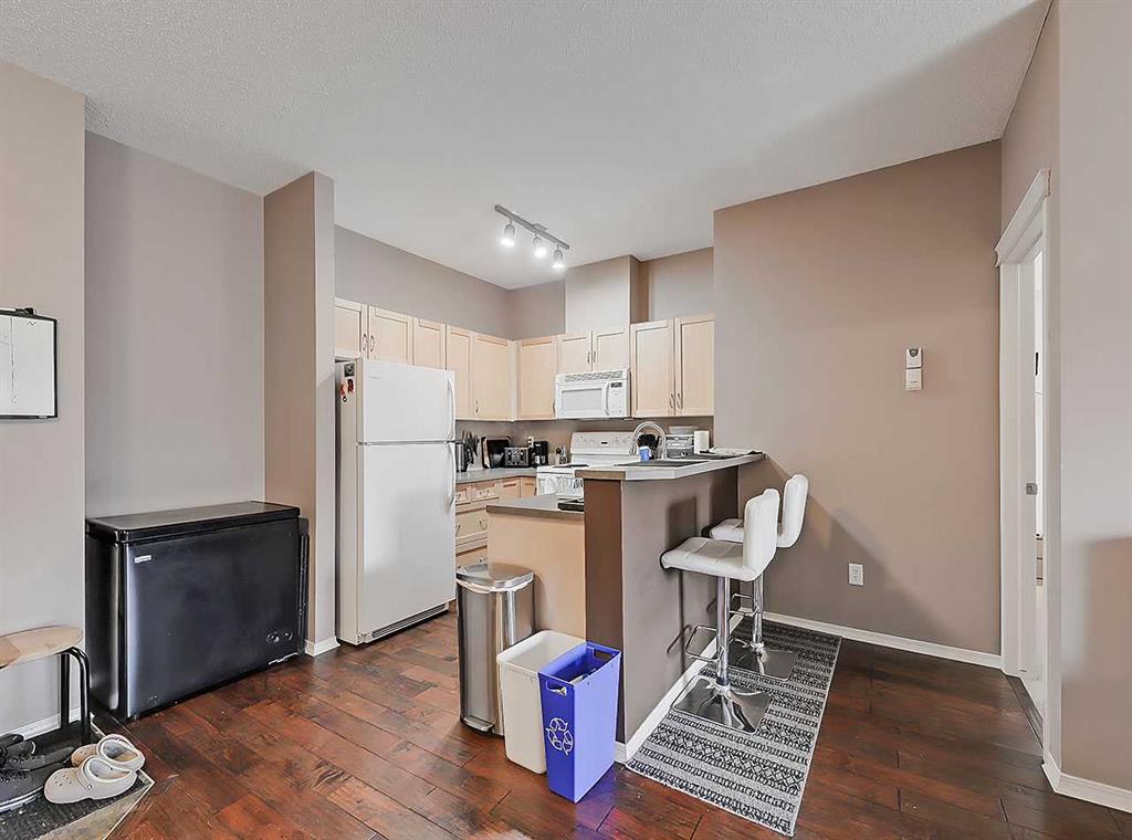 Don\'t miss out on the opportunity to view this charming TOP FLOOR UNIT located in the highly sought-after Panorama Place condominium development. Ideally situated just steps away from shopping centers, bus stops, and schools, this property boasts a prime location. This is your opportunity to live in one of Calgary\'s most desirable neighborhoods and enjoy all the conveniences it has to offer. As you enter the condo, you will be impressed by the open concept living and kitchen area. The kitchen boasts white kitchen appliances, a breakfast bar with seating for two, and a dining area. The master bedroom features a spacious walk-in closet and a 4-piece Ensuite bathroom. The living room is the perfect place to relax and unwind. The second bedroom is a great space for guests, a home office, or a cozy reading nook. The property comes with TWO UNDERGROUND TITLED parking and TWO STORAGE lockers in front of parking spaces, providing added convenience and security. Don\'t miss your chance to own this beautifully designed TOP FLOOR in a prime location