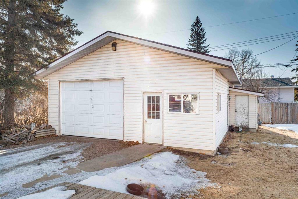 This 4-bedroom bungalow (2 up, 2 down) with 1.5 bathrooms offers plenty of room for family living, guests, or a home office setup. The main floor provides comfortable everyday living, while the lower level adds additional bedrooms and flexible space to suit your needs. Situated on an extra-large lot with partial fencing, this property offers so much potential — whether you envision expanding outdoor living space, adding further landscaping, creating a garden oasis, or exploring future development possibilities. There is plenty of room for kids, pets, or additional storage. The standout feature is the oversized garage, complete with workbenches — ideal for car enthusiasts, hobbyists, or anyone needing substantial workspace. With a little vision, this property presents a fantastic opportunity to build equity and customize to your taste. Located close to school and just minutes from downtown amenities, you’ll enjoy both space and convenience in one of Alberta’s most welcoming communities.