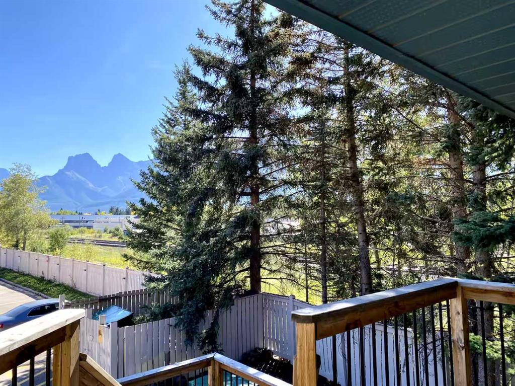 This Turnkey Ready **2 bedroom** HOTEL/CONDO** is a 2nd floor corner *END* unit with *spectacular mountain views*. This unit is an active AIRBNB unit. Located in Canmore on the the West side of Bow Valley Trail. Close to Downtown. Unit has newer furnace/hot water/tank and comes with all the furnishing and contents. Nicely updated with newer appliances and decor, Large windows and large Bay Window in Dining area, updated light fixtures with built in fans. Parking spot right in front of unit. Visitor parking available. The complex has newer 2 decks and stairs. Back deck is 100 sq ft. and Front Deck is 72 sq. ft.. Take a look at the 3D Tour in listing. The listing price **INCLUDES GST**