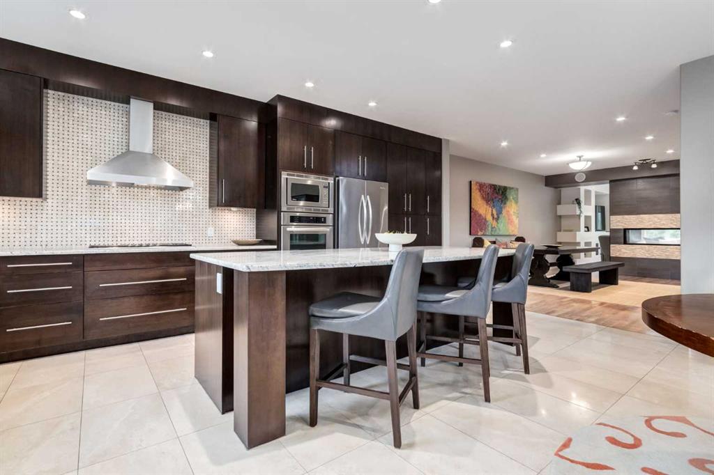 **OPEN HOUSE SATURDAY MARCH 7TH 11:00am - 1:00pm** This custom built residence is one of the largest semi-detached homes in the area, offering over 3300 sq ft of developed, high end living space across the three beautifully finished levels. From the thoughtful design to luxurious finishes, every detail of this home is tailored for comfort, style and function. Perfectly situated just off 17th Avenue, enjoy quick access to boutique shopping, vibrant restaurants, public transit, schools, cycling routes and major road ways. Only minutes to Shaganappi Pointe CTrain station and a short walk to the Bow River pathways - ideal for biking, running and walking. Additionally Highway 1 is just around the corner - your fast track to the Rocky Mountains! The main floor features an open concept with 9\' ceilings. Walnut hardwood and heated Travertine tile throughout, a dual sided fireplace connecting the Great Room and Nook as well as extensive built-ins, custom cabinetry and a stunning 9\' kitchen island. Welcome to your chefs kitchen featuring high end stainless steel appliances including a 5 burner Thermador gas cook top, wine fridge and Bosch dishwasher. Upstairs you will be greeted by 2 Primary suites, with not one but TWO luxurious spa like ensuites complete with glass showers, soaker tubs, dual sinks, heated floors and granite counters. Expansive walk in closets, and a fireplace. The upper floor also is home to a spacious laundry room and a loft for your home office, complete with built ins and granite counters. The lower level will treat you to hydronic in floor heating under more Travertine tile, a custom espresso/wine bar, complete with more built ins, granite counters and another wine fridge. There is also a third bedroom, another full bath featuring a beautiful glass steam shower. This luxury home sits on an oversized lot, with an oversized heated garage complete with epoxy floors. Central A/C, water softener, vacu flo system, Hunter Douglas custom blinds, hardwired sound system, glass railings on the exterior entrances, fully landscaped and fenced yard. Please note, this home was also constructed with a concrete party wall! There are too many extras in this home to describe, it is a definite must see!! This property will not last long - Book your showing soon!!