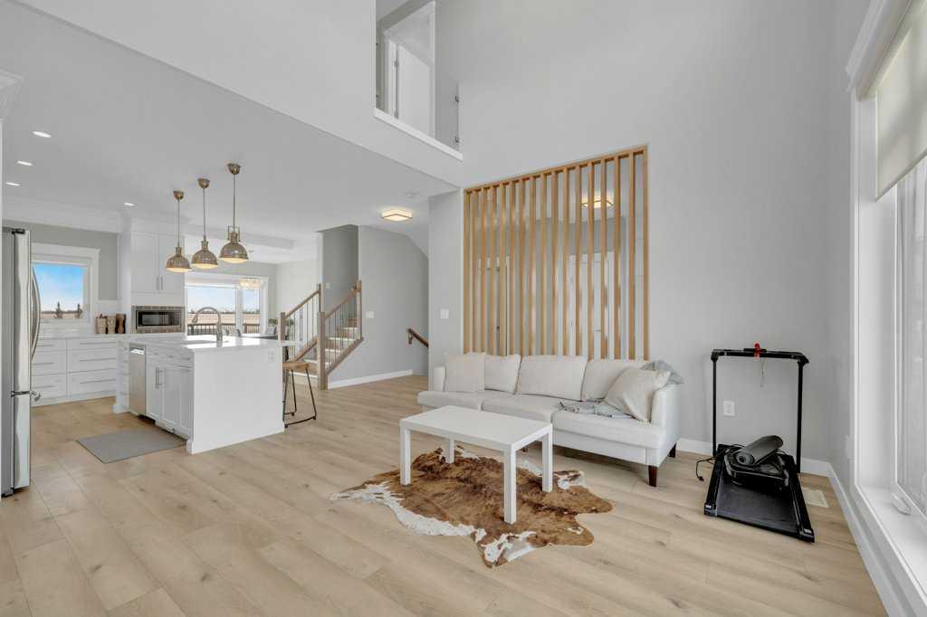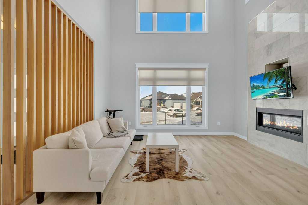 Welcome to this beautifully designed two-storey home tucked away in a quiet cul-de-sac in The Highlands. Offering a bright, open floor plan with soaring ceilings and expansive windows, this home is filled with natural light and thoughtful architectural detail throughout. The main level showcases a striking tiled feature wall with fireplace and a custom wood slat accent wall that creates a warm, modern first impression. The kitchen is designed to impress with custom cabinetry, a large island with quartz countertops and an inviting eating area perfect for family gatherings or entertaining. A convenient 2 pce bathroom is located on the main floor, along with a functional mudroom/laundry room that provides direct access to the attached oversized heated garage — offering ample space to accommodate multiple vehicles and additional storage. Upstairs you’ll find four spacious bedrooms, including a stunning primary retreat. The primary suite features a custom built in walk in closet, double sinks, a dedicated makeup counter, abundant storage in the vanity, a glass shower and a freestanding soaker tub — creating a true spa like ensuite experience. An additional full bathroom serves the remaining bedrooms. The fully developed basement expands your living space with one additional bedroom, another full bathroom, a spacious family room and a versatile flex room ideal for a home office, den or toy room. A custom wood feature wall with TV mount adds a stylish focal point, making the lower level perfect for movie nights or relaxing with family. Outside, enjoy a landscaped and fully fenced yard with gorgeous views of the local fields. Located close to numerous walking paths, shopping and schools, this home offers the perfect blend of privacy, space and convenience in a sought-after neighbourhood. Call today to book a tour!!