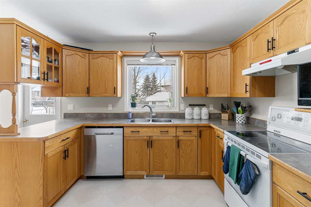 Come check out this Fully Developed 1507 Sqft 2 Storey located in quiet area of Royal Oaks Subdivision. Features of This Clean affordable spacious family home starts on main floor when you enter inside walk over & through a set of French doors into a large den/office that could also be used as another bedroom if needed with walk in closet and an entrance to 3 piece bathroom, walk down the hall to a large dining area nice size kitchen & over to small pantry, main floor Landry and an entrance into house from the garage. Head Upstairs to 3 bedrooms with large Master that has walk in closet and entrance into the main 4 piece bathroom. Downstairs is fully developed with good sized Family room, 2 more bedrooms, another 4 piece Bathroom, and utility room/storage. Outside is complete with Attached Double heated Garage, Fully Landscaped and fenced with Large backyard concrete patio, some trees for privacy and easement separating the back neighbors. **Note that this home has had some fresh painting on main floor , Brand New carpet just installed on stairs and hallway. On Demand HWT installed in July, 2024. Shingles were also replaced August 2025**. This wonderful home is all ready for new owners and possession is quite Negotiable.