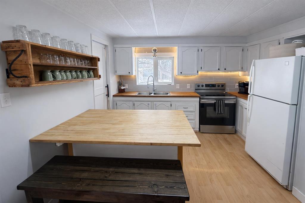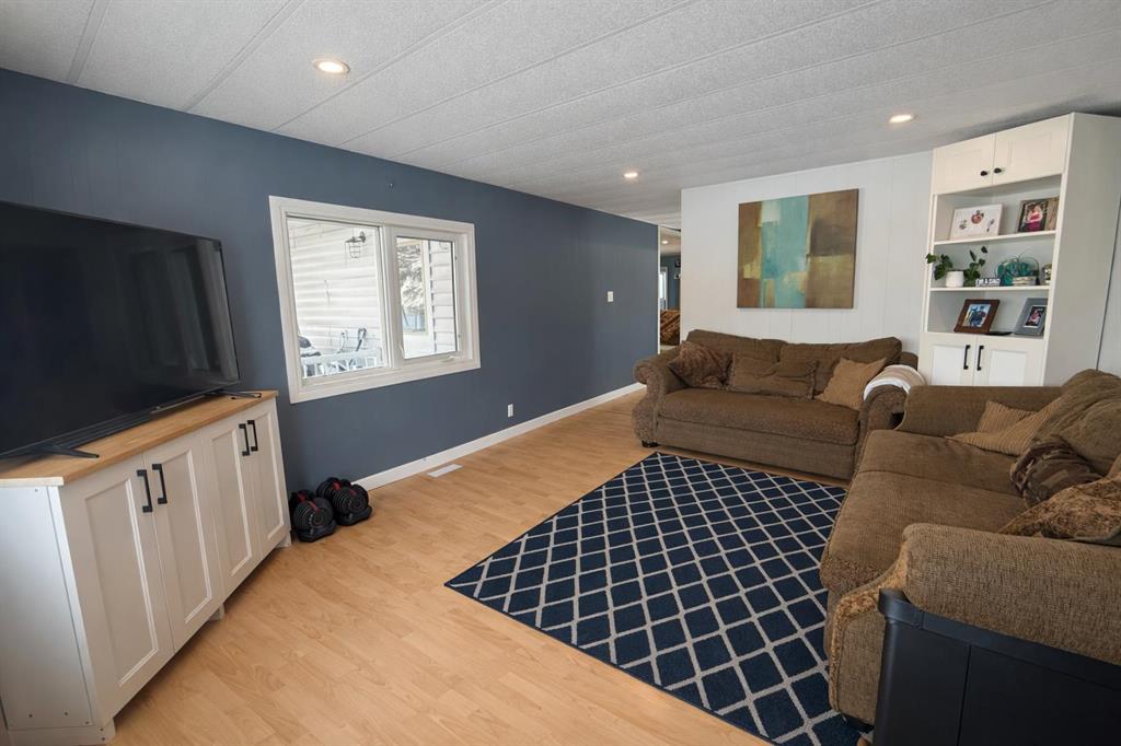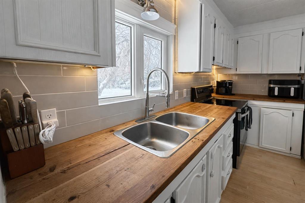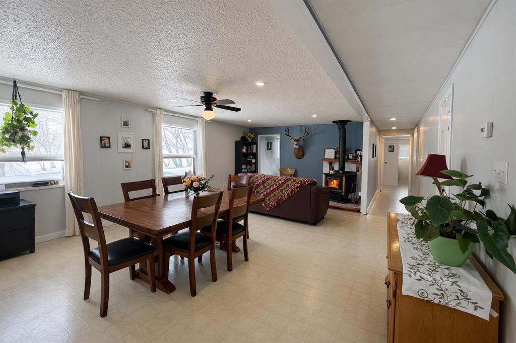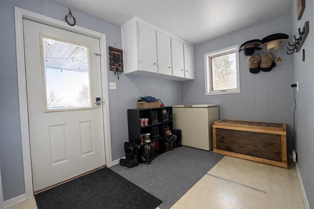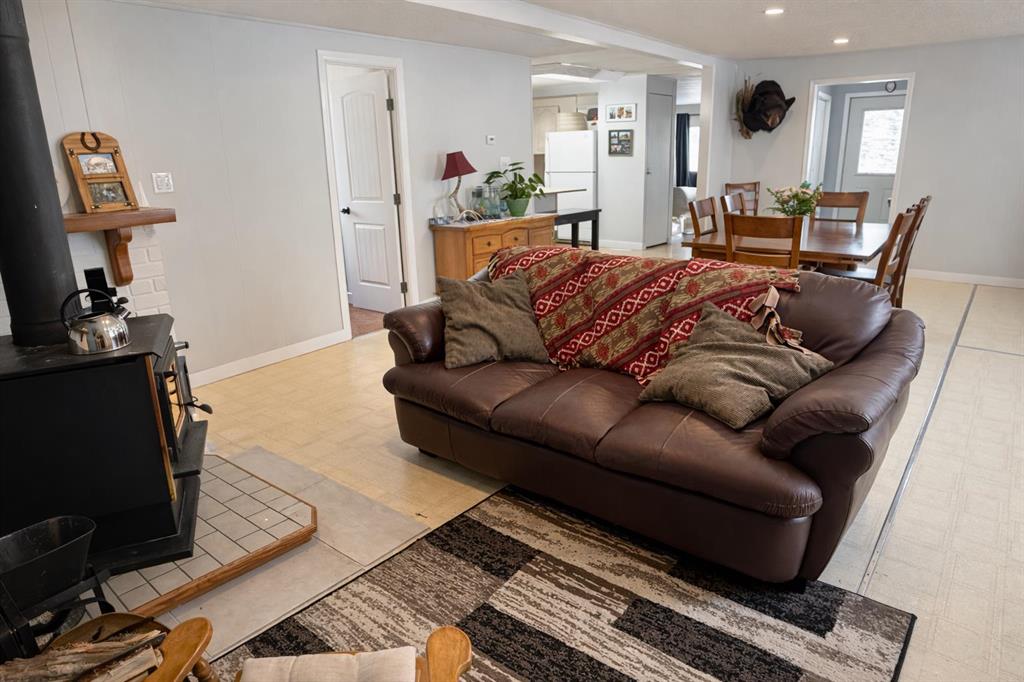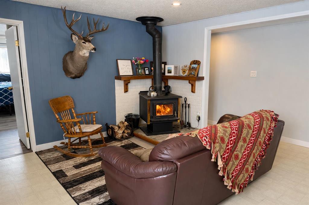 Escape to the country with this well-established acreage situated on 1.84 acres, offering privacy, functionality, and space to enjoy rural living. The home welcomes you with a large front porch accessible from the covered deck entry — the perfect spot to relax and take in the peaceful surroundings. Inside, you’ll find a bright open-concept family and dining area, centered around a cozy wood fireplace that provides additional warmth during colder months. The kitchen is designed for both everyday living and entertaining, featuring a large island with sit-up seating, butcher block countertops, and several newer appliances including the stove, dishwasher, washer, and dryer. Just off the kitchen is a convenient pantry and laundry area. A separate bonus living room with two large windows fills the space with natural light and includes a three-piece entertainment unit that will remain with the home. Down the hallway are three bedrooms, including two smaller rooms ideal for children, guests, or a home office, plus a third bedroom with built-in storage and bunk bed setup. The spacious primary bedroom offers excellent storage along with a renovated ensuite, while the main 4-piece bathroom was also updated in the summer of 2025. Additional updates include a high-efficiency furnace and hot water tank replaced in 2025. Outside, this property truly shines. The fully fenced perimeter with electric fencing is ready for animals and includes three paddocks and a small round pen. The yard has been thoughtfully developed with a garden area, greenhouse, fire pit space, chicken coop and run, plus three powered granaries for storage or hobby use. A heated pump house with backup generator provides added peace of mind. Mature trees surround the yard site, creating excellent shelter, privacy, and a welcoming farmstead feel. This is a rare opportunity to own a turn-key acreage with established infrastructure — perfect for hobby farming, animals, or simply enjoying country living close to town.