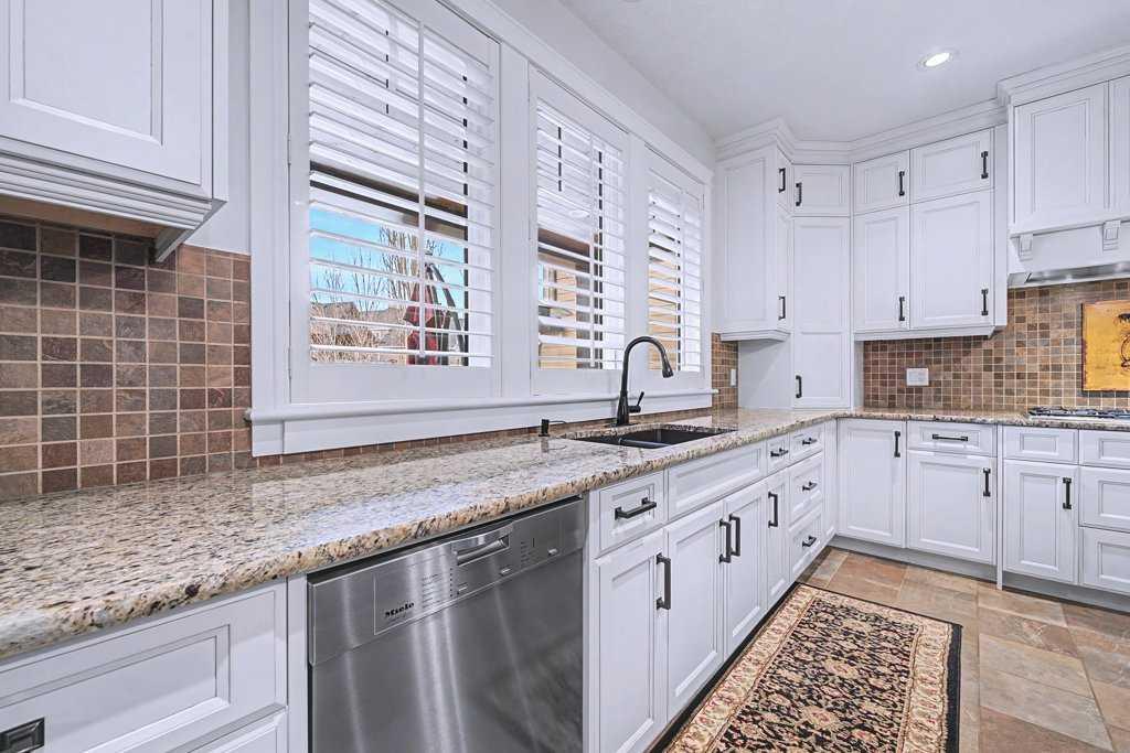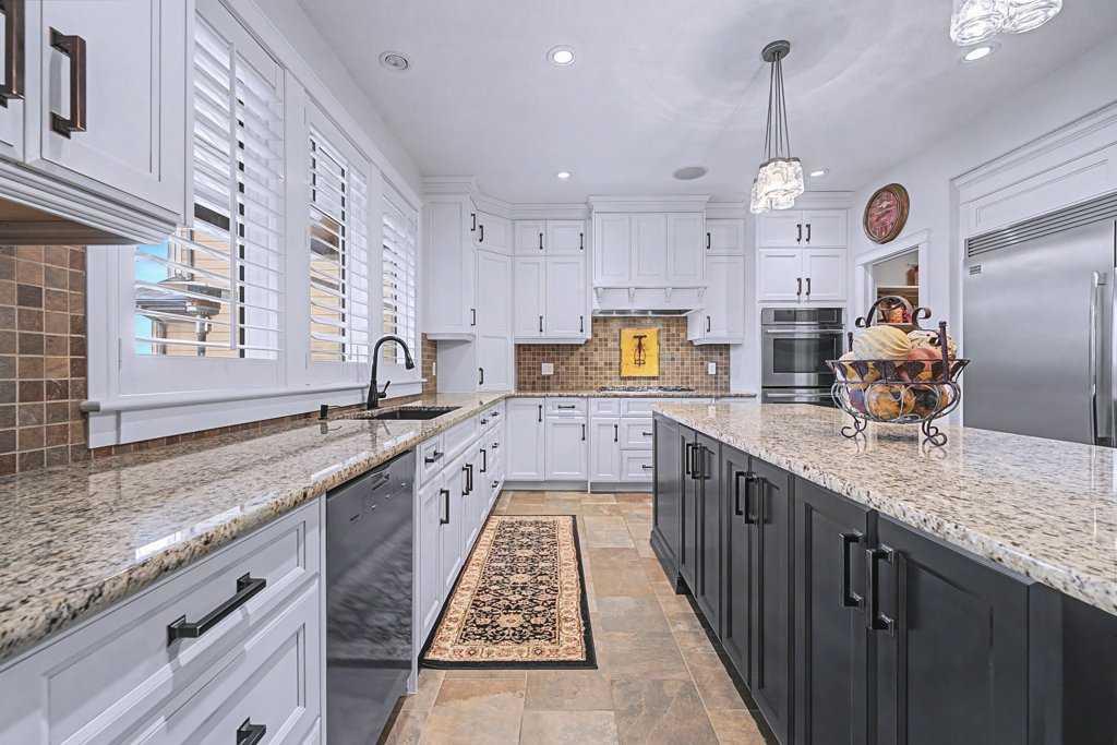 The heart of the home is the gourmet kitchen—a dream for both chefs and entertainers. Outfitted with built-in stainless steel appliances including a Frigidaire Professional dual-door fridge, JENN-AIR gas cooktop & oven, and MIELE dishwasher, this kitchen blends functionality and beauty. A massive island, granite countertops, and warm wood shaker cabinets elevate the space, while the massive walk-in pantry ensures everything has a place.