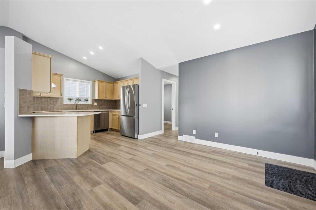 This charming 3 bedroom bi level in Airdrie’s desirable Morningside community has been beautifully updated and is truly move in ready. Luxury, durable vinyl plank flooring and fresh paint span the main level, setting the tone for the bright living room with vaulted ceiling & cozy gas fireplace, a spacious dining area perfect for hosting family and friends, and a refreshed kitchen featuring quartz countertops, abundant storage, and brand new stainless steel appliances. The primary bedroom offers a walk in closet and a nicely updated 4 piece ensuite complete with new tile, faucets, shower kit, and a built in medicine cabinet. Two additional bedrooms and an updated 4 piece main bath provide comfortable space for kids, guests, or a home office. Thoughtful upgrades continue throughout the home, including flat painted ceilings, new blinds, custom closet organizers, solid interior doors, updated baseboards and casings, black hardware, new electrical outlets and switches, and modern lighting throughout—including recessed lighting. The walk up basement is an excellent blank canvas, ready for your future development plans to add even more living space. Outside, enjoy a sunny south facing backyard that has been newly landscaped with a stone patio, rock beds, trees, and fresh sod. A double detached garage plus an additional parking pad adds convenience and easy parking year round. Ideally located close to shopping, schools, parks, and with quick access to QE II, this home offers comfort, style, and convenience. Immediate possession is available.