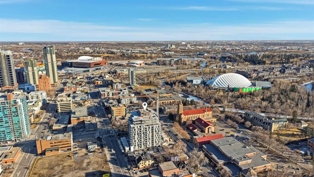Built by Homes by Avi, this beautifully designed 2 bedroom plus den/office, 2 bath Abbey floorplan offers modern living in the heart of Calgary’s vibrant Culture and Entertainment District. Steps from the Calgary Stampede, BMO Centre, Scotiabank Saddledome, and the restaurants and nightlife of 17th Avenue, this location delivers exceptional walkability and urban convenience. Nestled within the sought after community of Mission, you’re also moments from boutique shops, acclaimed dining such as Mercato and Añejo, and the world class MNP Community & Sport Centre. Inside, the unit features premium finishes and thoughtful design throughout. A large kitchen island/eating bar with Ocean Foam quartz countertops is complemented by Cotton Mist shaker cabinetry, black faucets and hardware, and full size stainless steel appliances. Floor to ceiling windows and durable luxury vinyl plank flooring create a bright, contemporary atmosphere. The primary bedroom includes a walk in closet and private 3 piece ensuite, while the spacious secondary bedroom with ample closet space and separate 4 piece bath offer excellent flexibility for guests or roommates. The spacious living room has access to a large north facing balcony allowing gorgeous views of the city skyline. The pocket office/den is the perfect space for work from home days. A discreet in suite laundry room and included roller shade window coverings add everyday convenience. Concrete construction provides lasting durability, while central air conditioning ensures year round comfort. Additional highlights include titled underground heated parking and an assigned storage locker. From this location, you’ll love being able to walk to everything — from Mission’s cafés and shops to the energy of 17th Avenue. Enjoy the Bow River Pathway just minutes away or spend the day exploring the CORE Shopping Centre with more than 120 retailers, including Holt Renfrew. Whether training at the MNP Community & Sport Centre or meeting friends at local favorites like Ship & Anchor or Model Milk, this is urban living at its finest.
